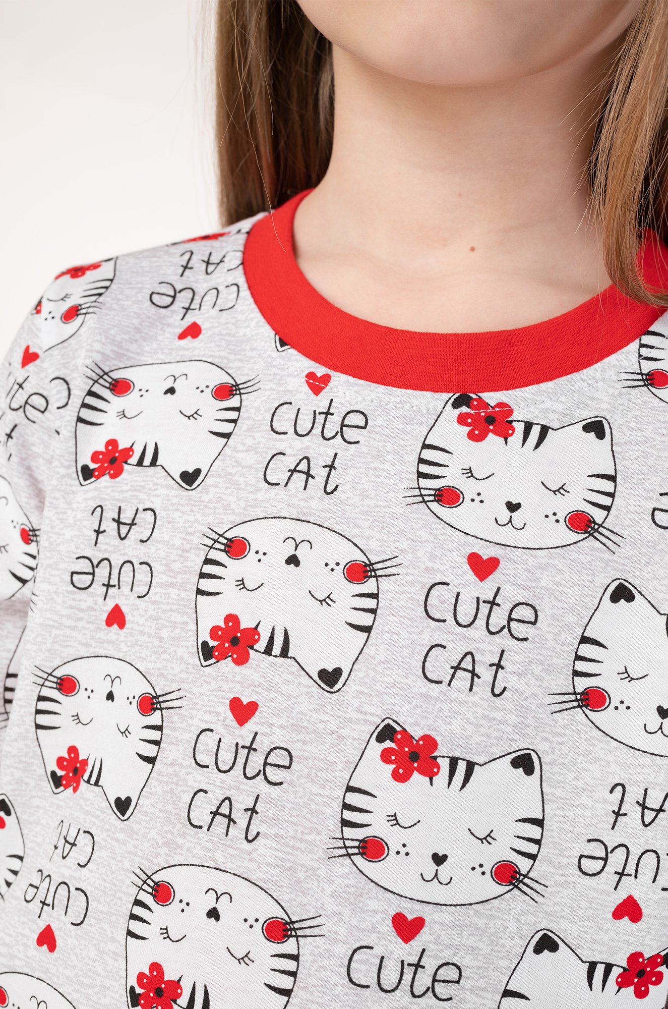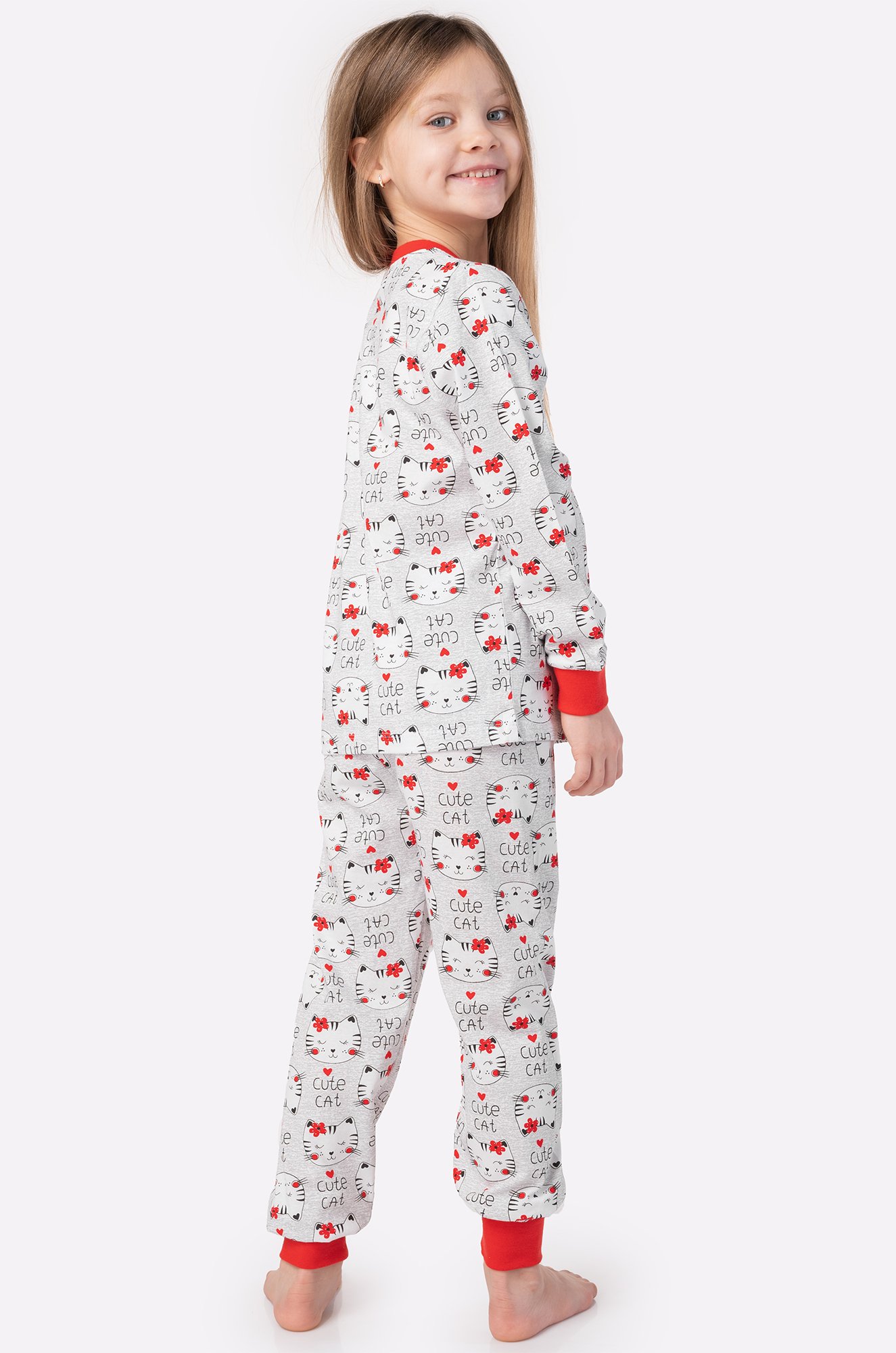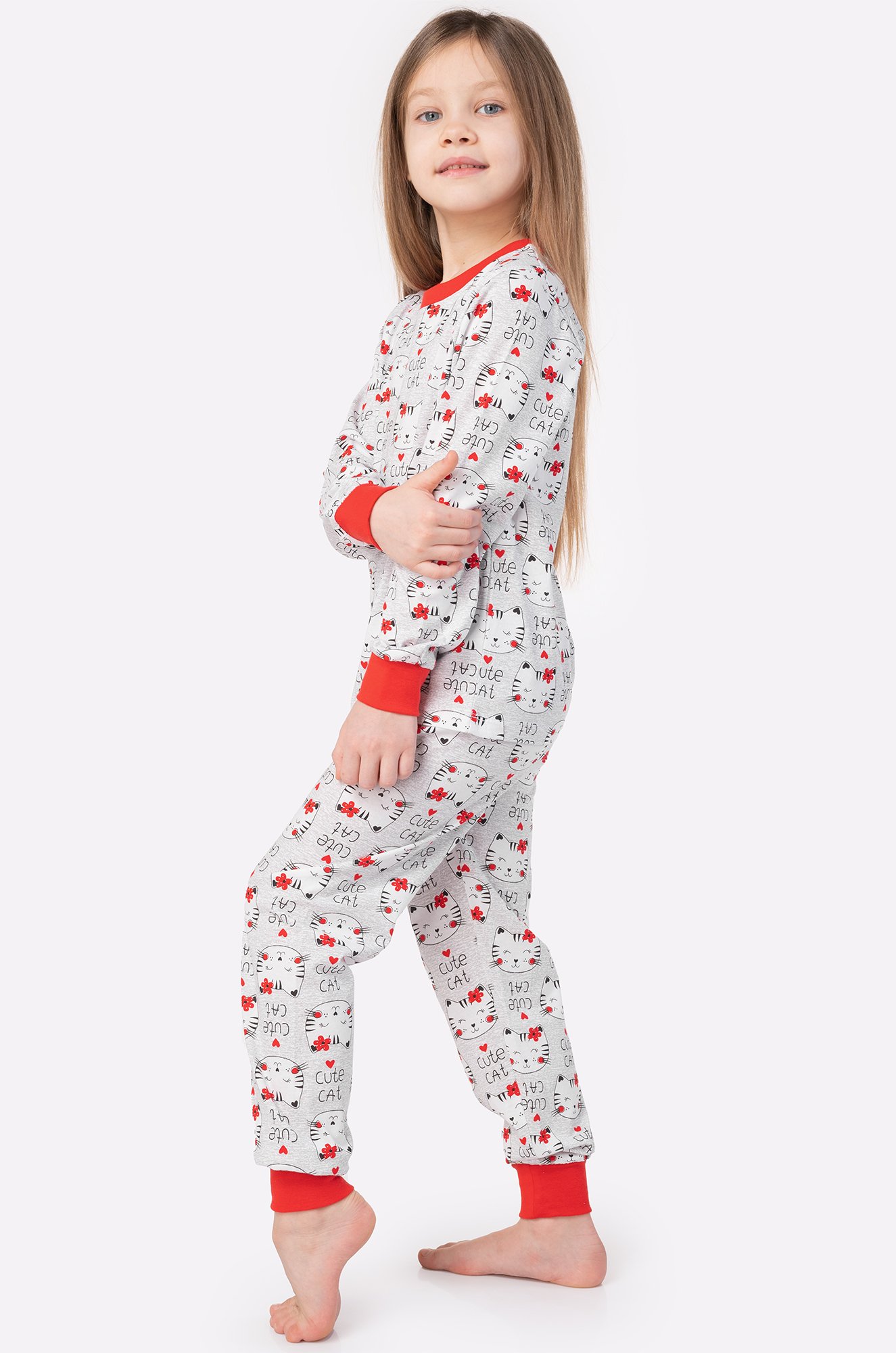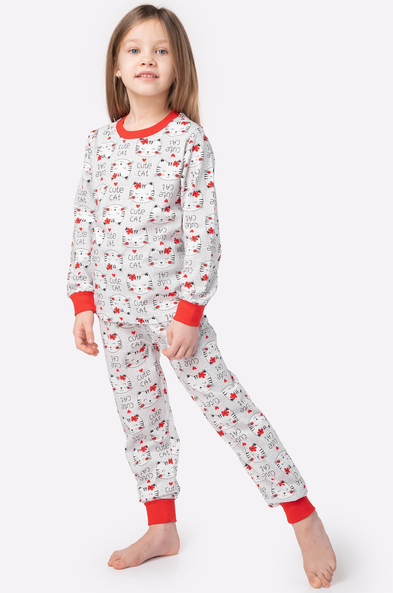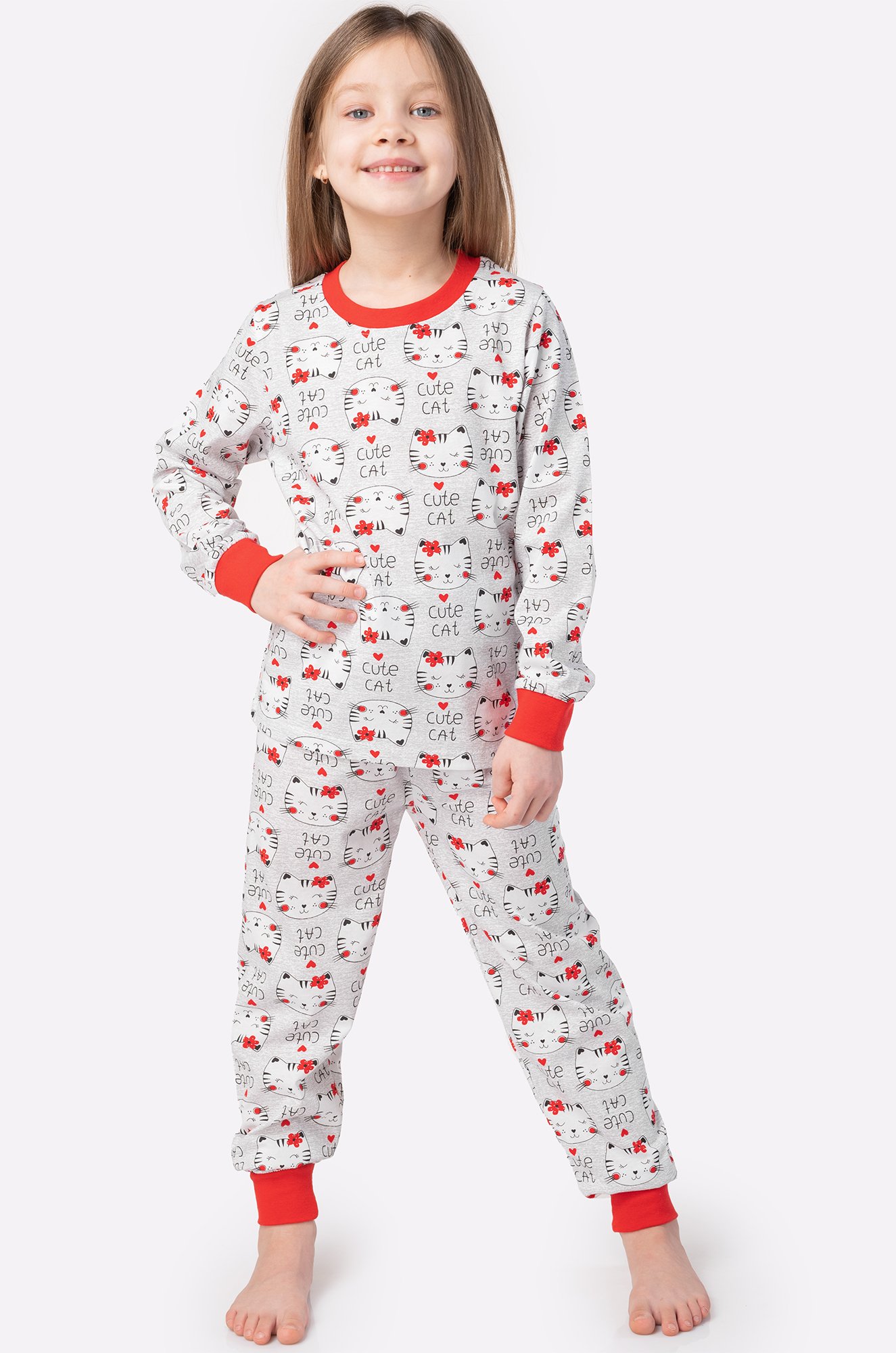 Пижама для девочки выполнена из ткани кулирная гладь. Домашний костюм из натурального хлопка. В наборе джемпер с длинным рукавом и свободные прямые брюки. На рукавах джемпера - широкие манжеты. В брюках эластичный пояс на резинке и мягкие манжеты. Пижама для девочек очень удобна для сна и домашнего времяпрепровождения. Домашний костюм из натурального хлопка, очень приятного к телу. Детская пижама с принтом кошечки. Качество хлопка, принта и пошива пижамы будет радовать своим первоначальным видом, пока ребенок не вырастет из неё.