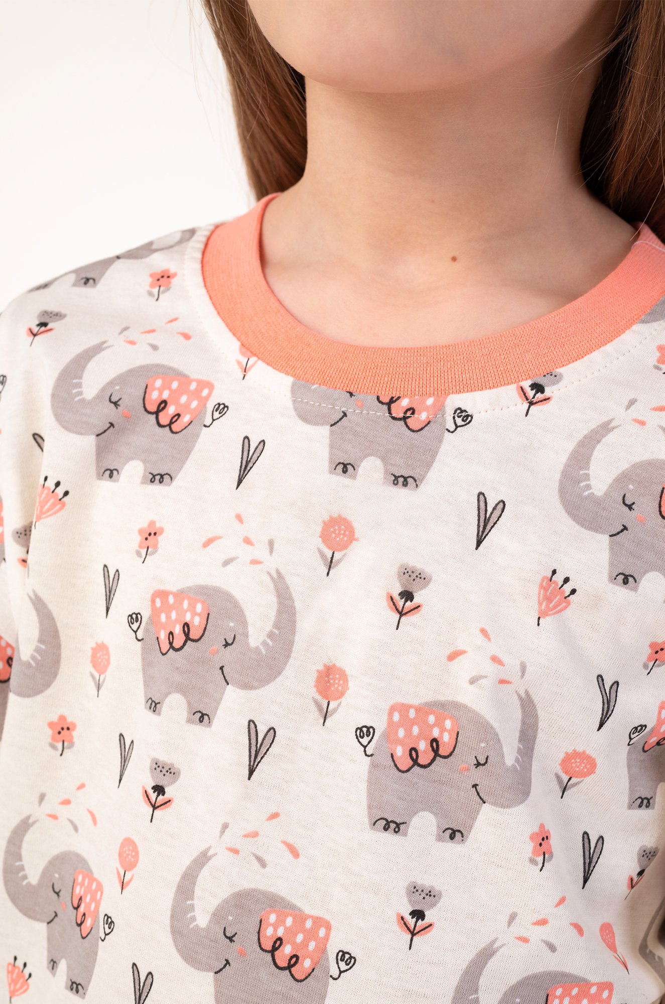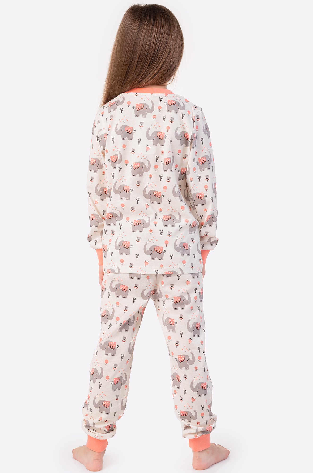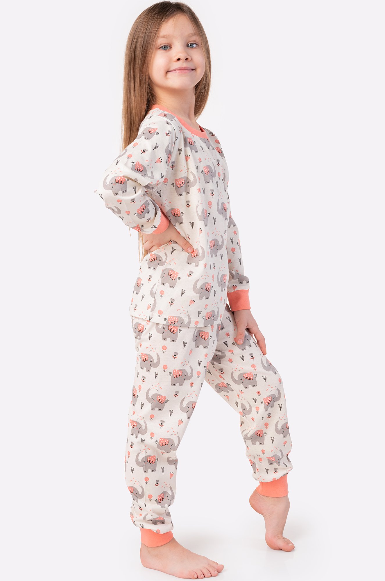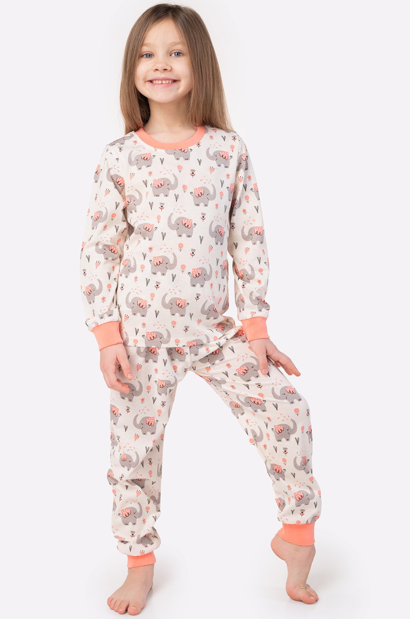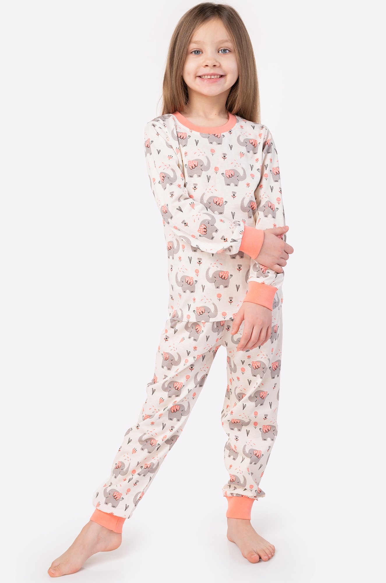 Пижама для девочки выполнена из ткани кулирная гладь. Домашний костюм из натурального хлопка. В наборе джемпер с длинным рукавом и свободные прямые брюки. На рукавах джемпера - широкие манжеты. В брюках эластичный пояс на резинке и мягкие манжеты. Пижама для девочек очень удобна для сна и домашнего времяпрепровождения. Домашний костюм из натурального хлопка, очень приятного к телу. Детская пижама с принтом слоники. Качество хлопка, принта и пошива пижамы будет радовать своим первоначальным видом, пока ребенок не вырастет из неё.