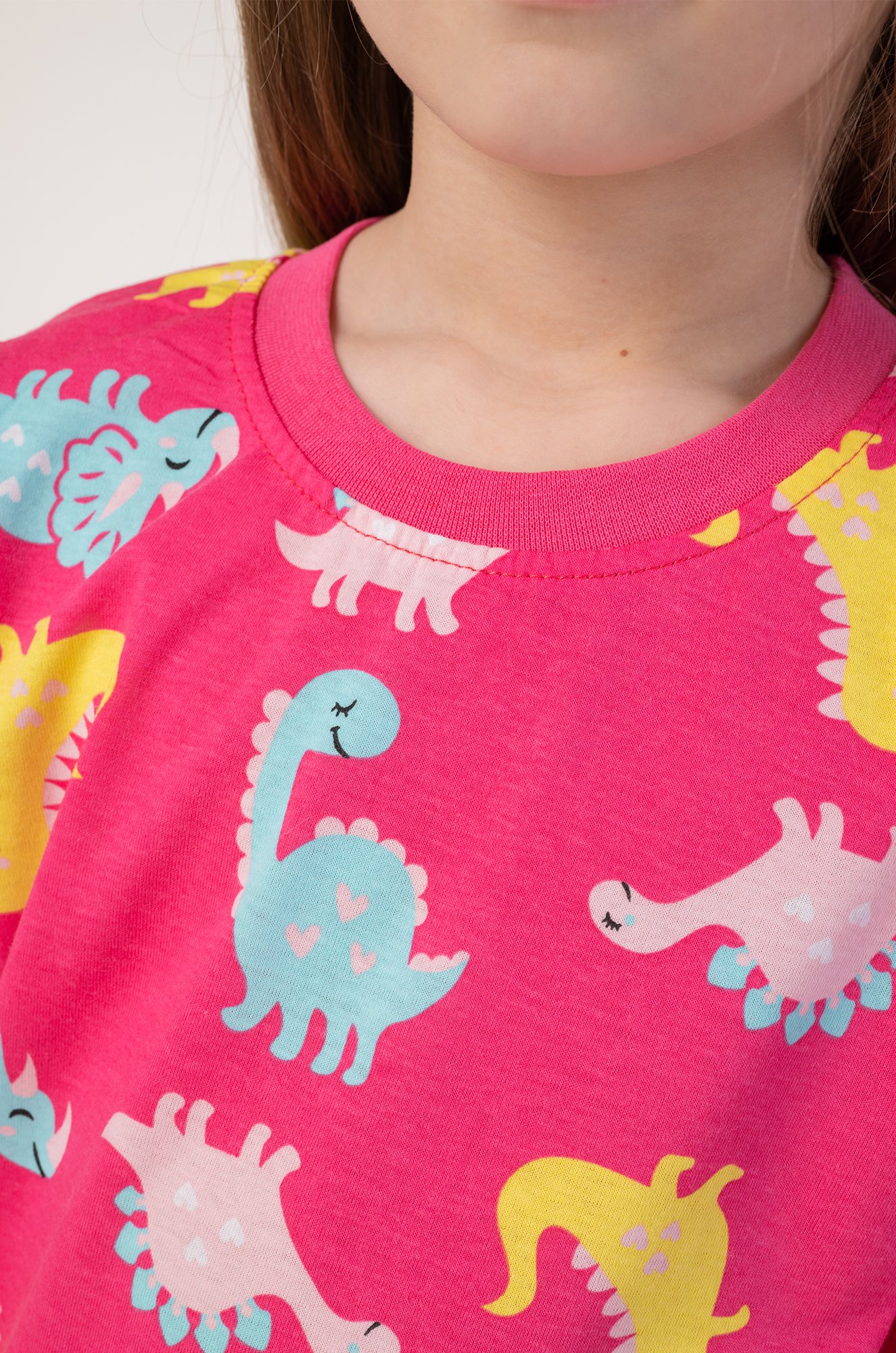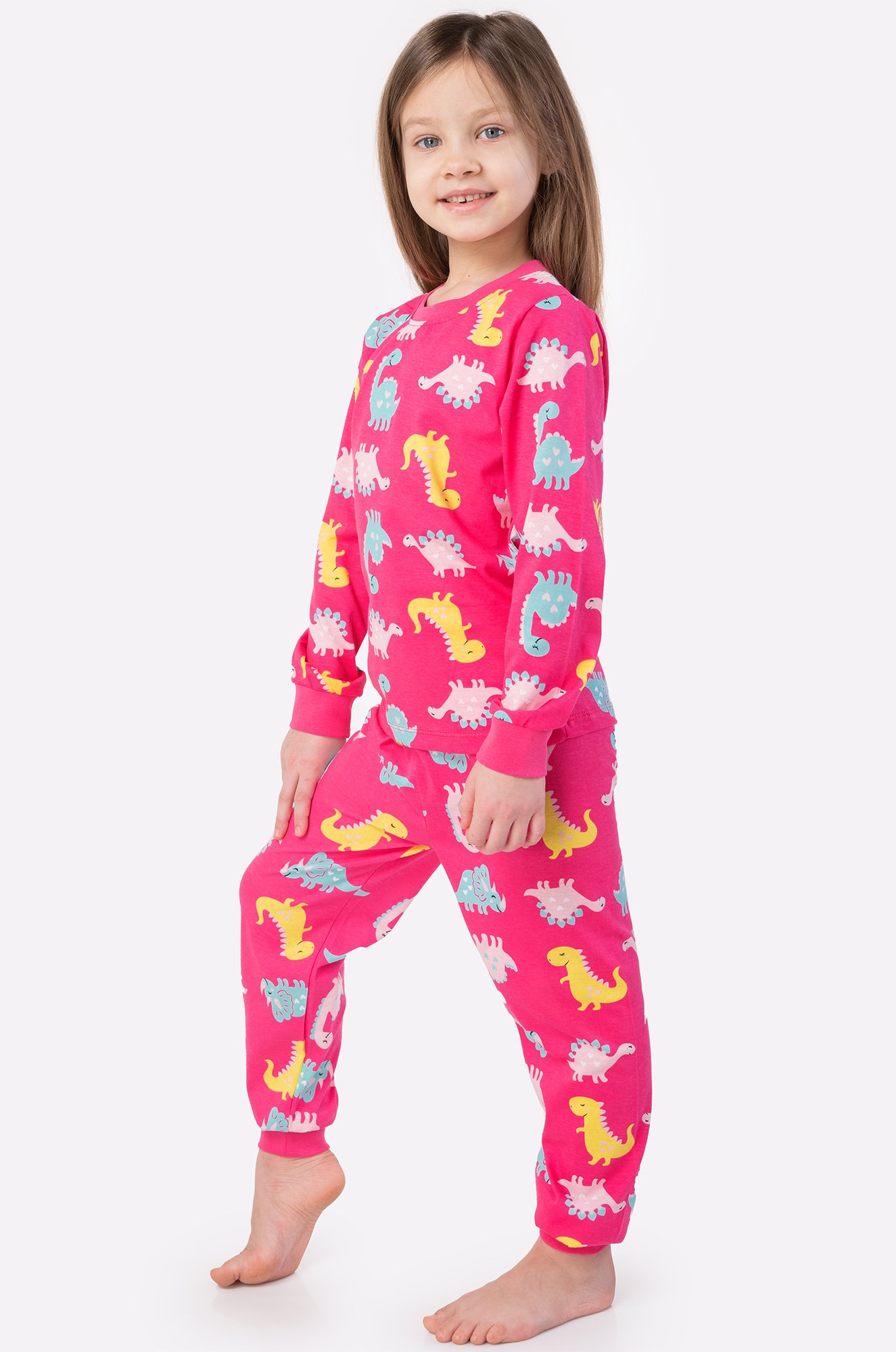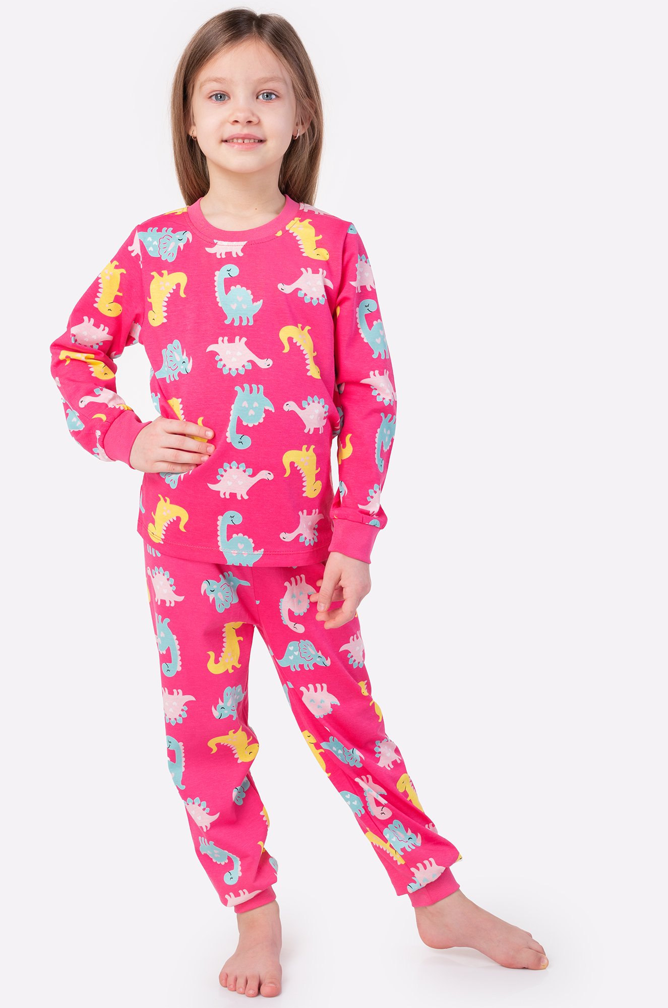 Пижама для девочки выполнена из ткани кулирная гладь. Домашний костюм из натурального хлопка. В наборе джемпер с длинным рукавом и свободные прямые брюки. На рукавах джемпера - широкие манжеты. В брюках эластичный пояс на резинке и мягкие манжеты. Пижама для девочек очень удобна для сна и домашнего времяпрепровождения. Домашний костюм из натурального хлопка, очень приятного к телу. Детская пижама с принтом динозаврики. Качество хлопка, принта и пошива пижамы будет радовать своим первоначальным видом, пока ребенок не вырастет из неё.