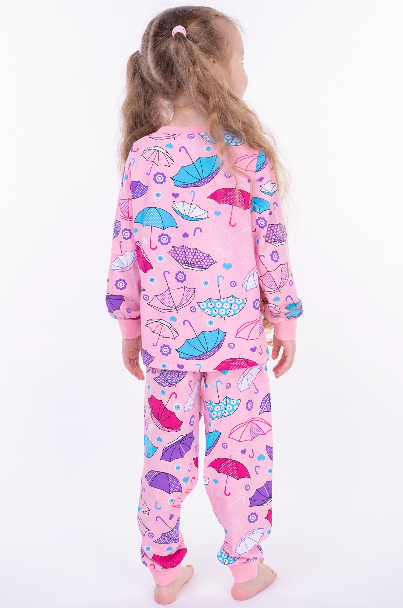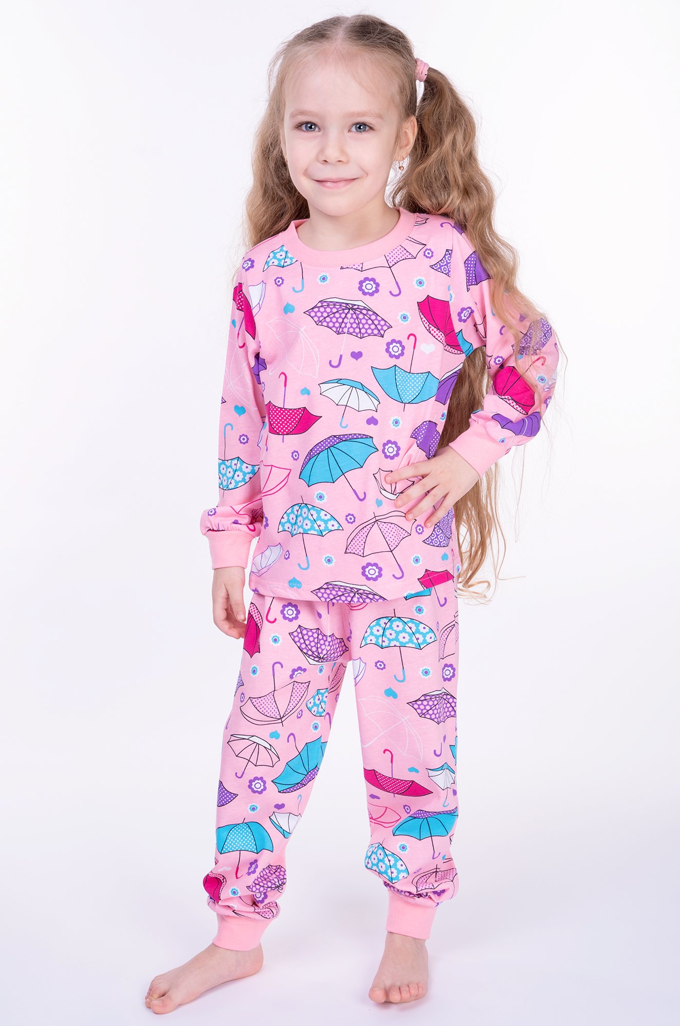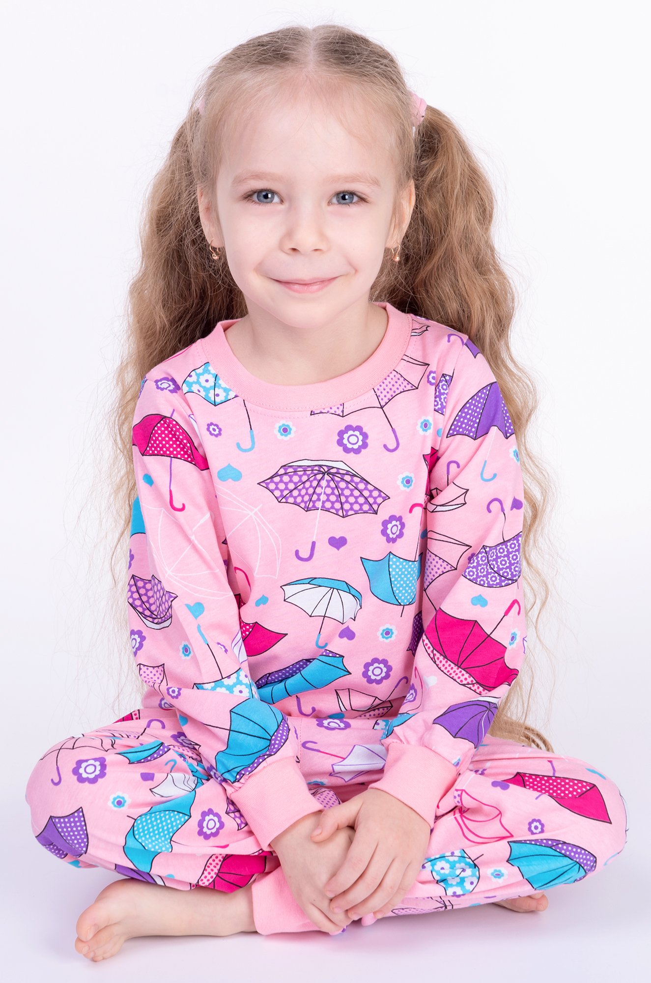 Пижама для девочки выполнена из 100% хлопкового полотна кулирная гладь. Детский домашний костюм декорирован набивным принтом цветные зонтики.
