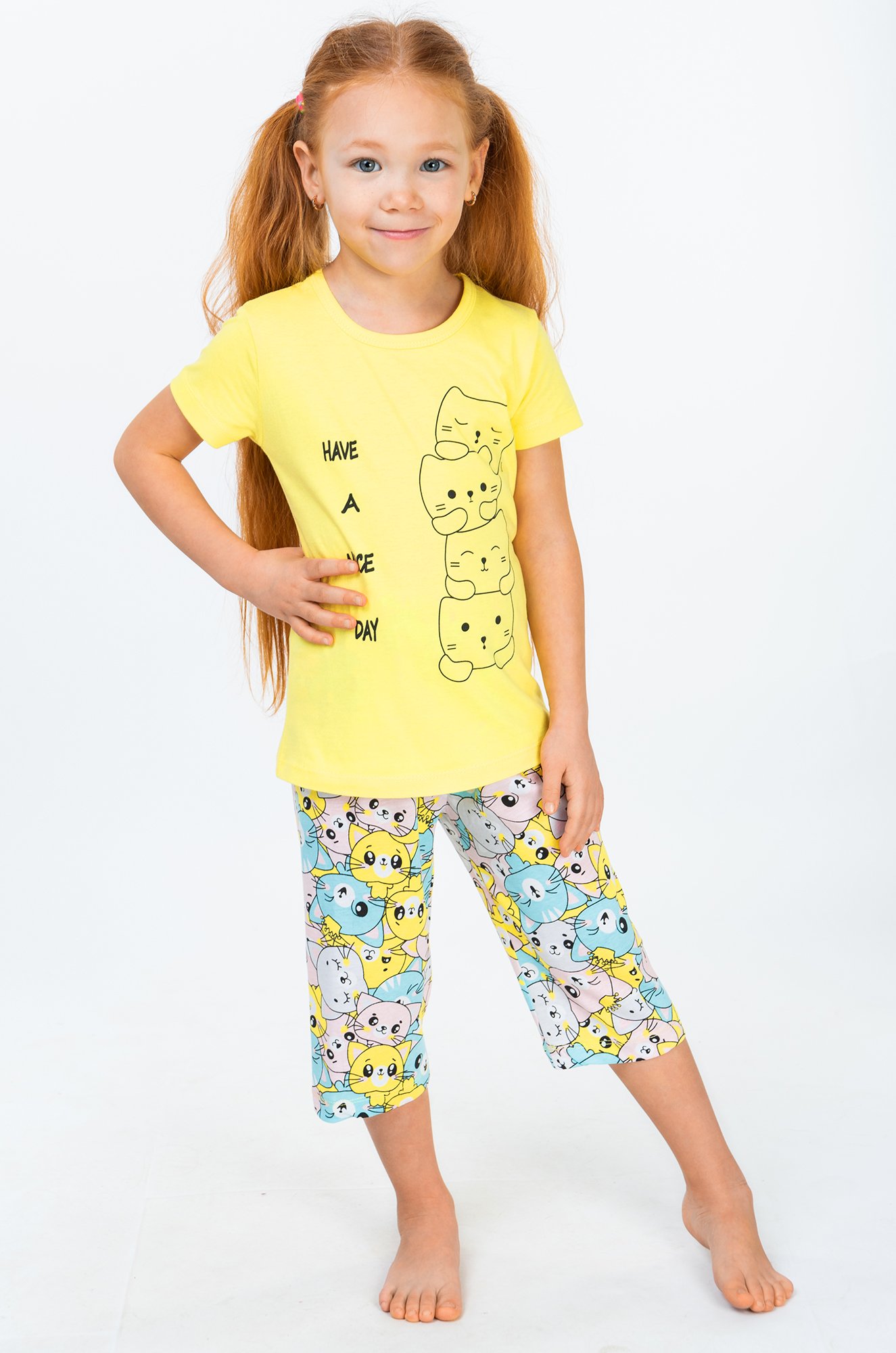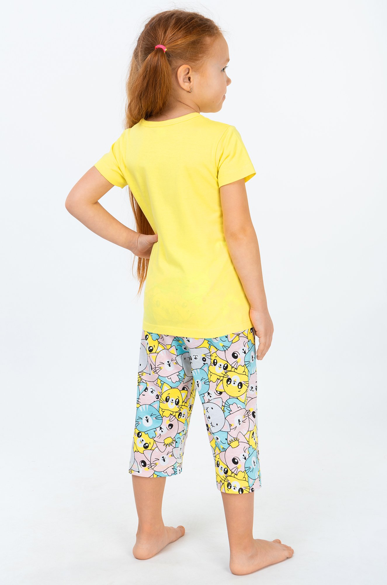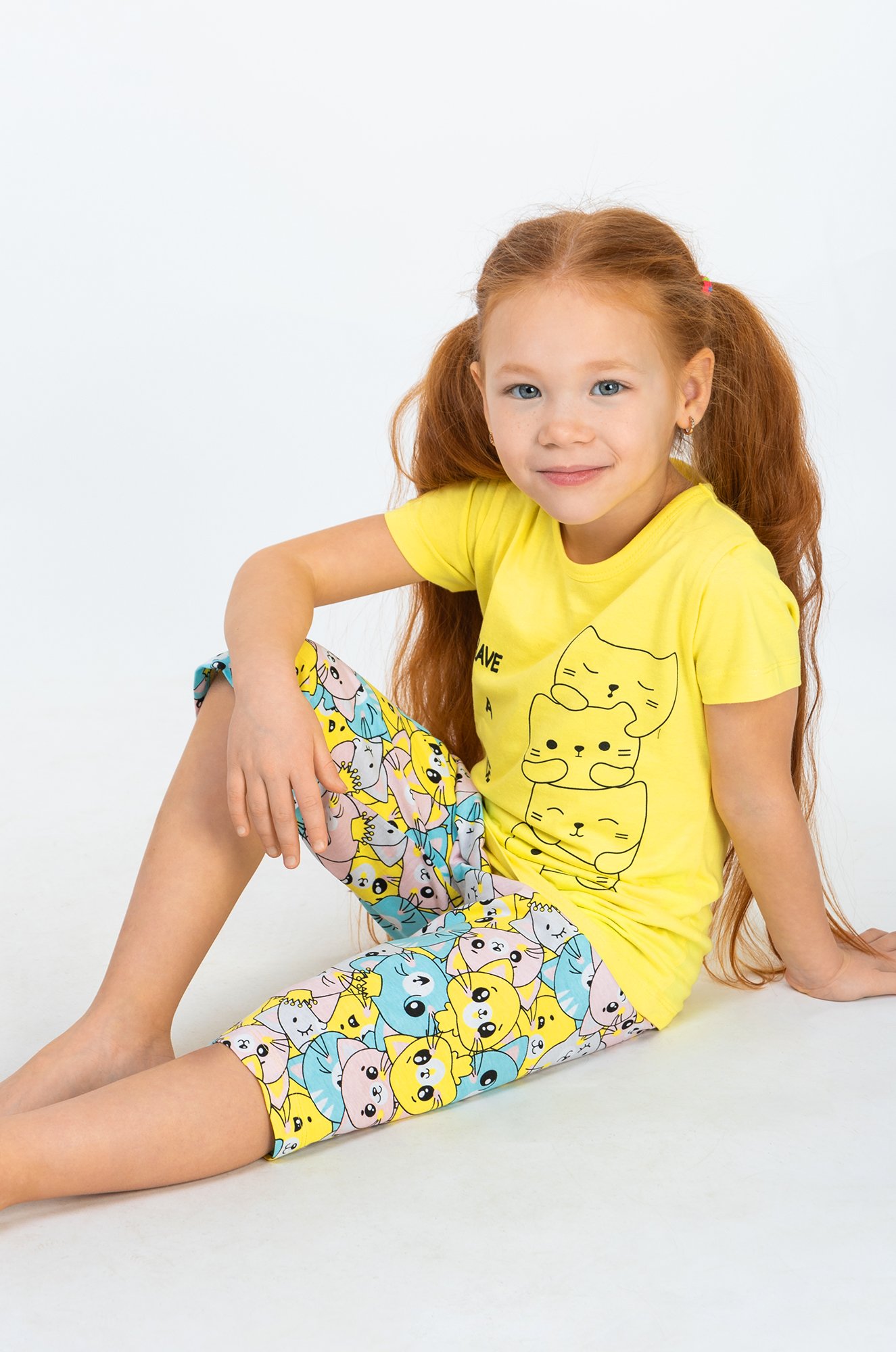 Пижама для девочки выполнена из 100% натурального хлопкового трикотажа высокого качества, ткань кулирная гладь. В комплекте футболка классического кроя и брюки на мягкой эластичной резинке.