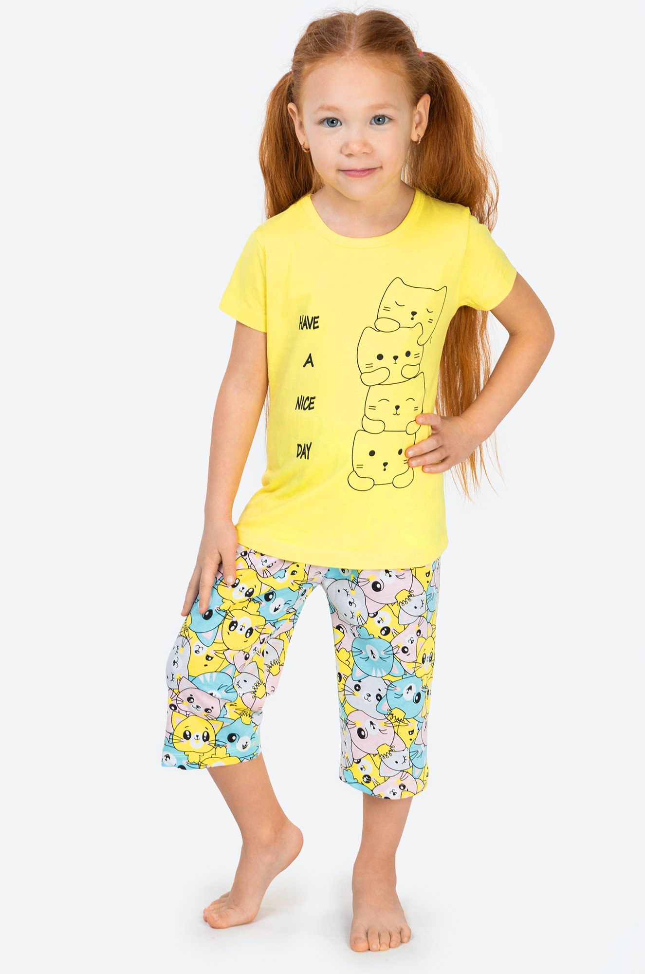 Детская хлопковая пижама украшена милым принтом кошечки.