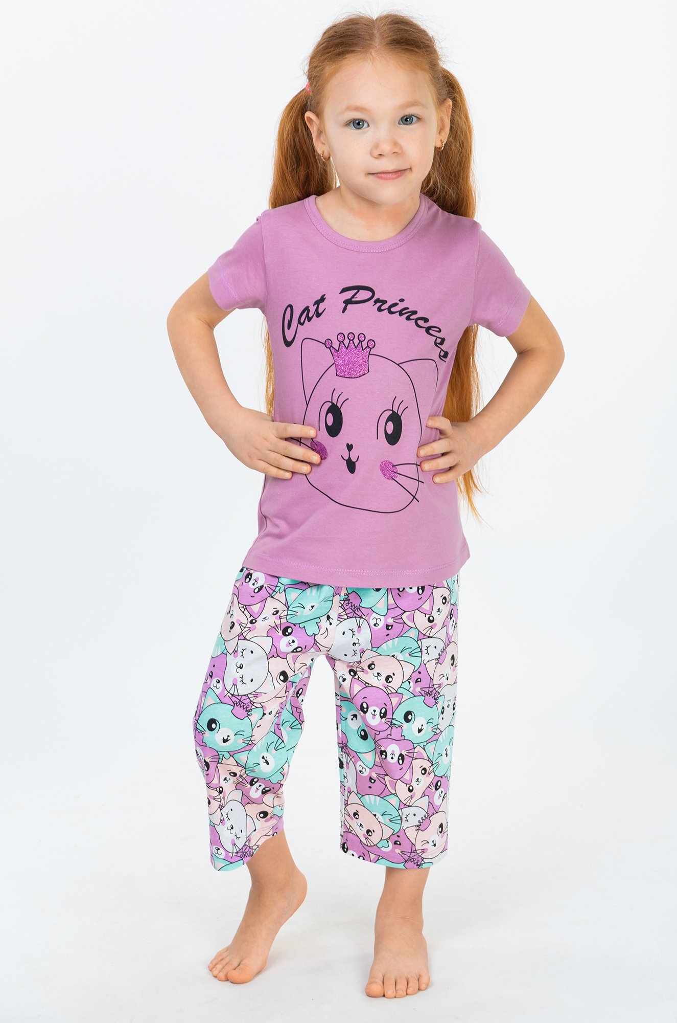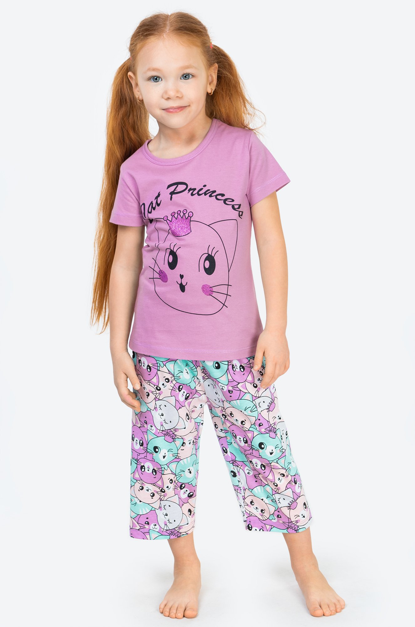 Пижама для девочки выполнена из 100% натурального хлопкового трикотажа высокого качества, ткань кулирная гладь. В комплекте футболка классического кроя и брюки на мягкой эластичной резинке.