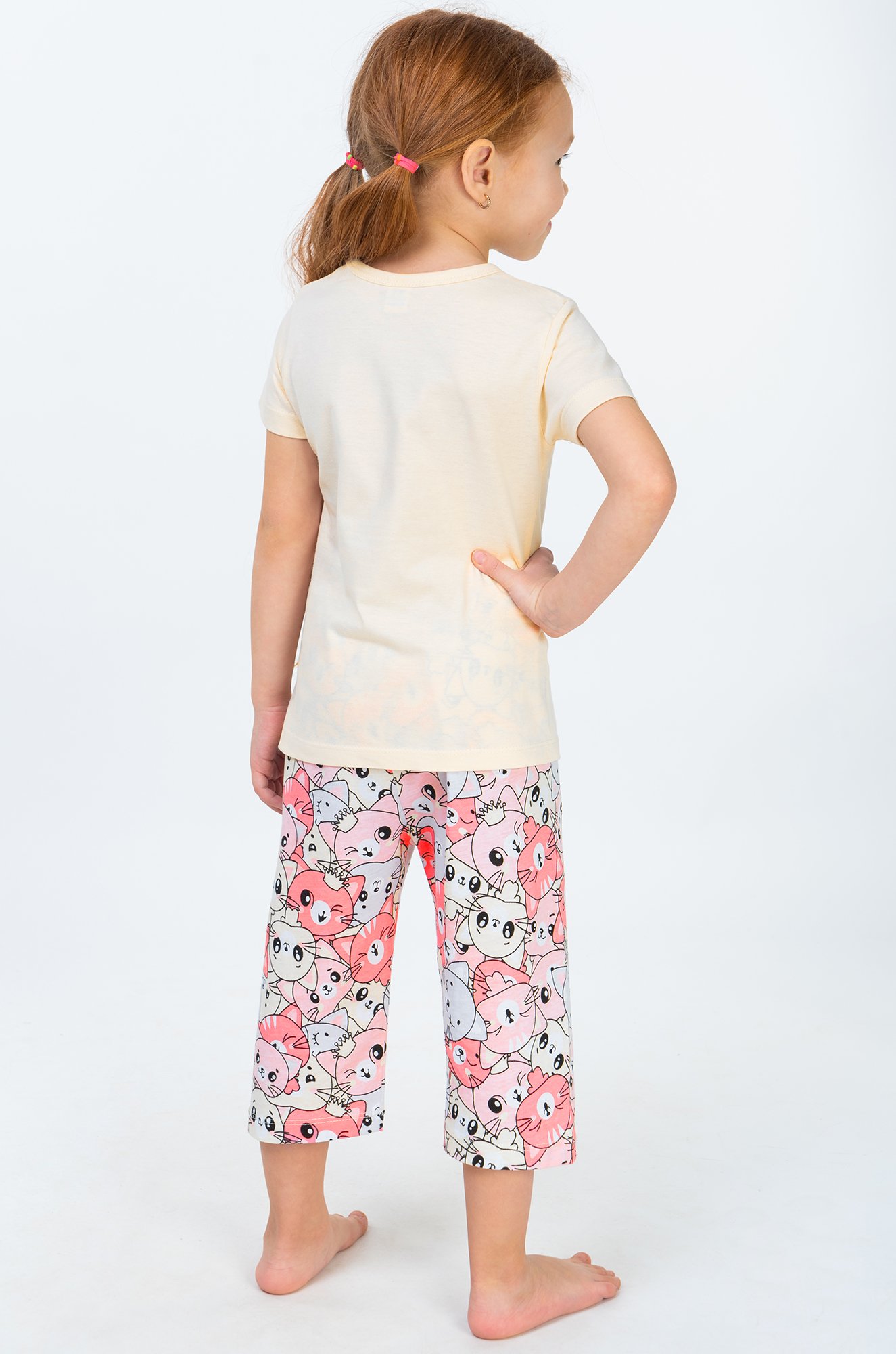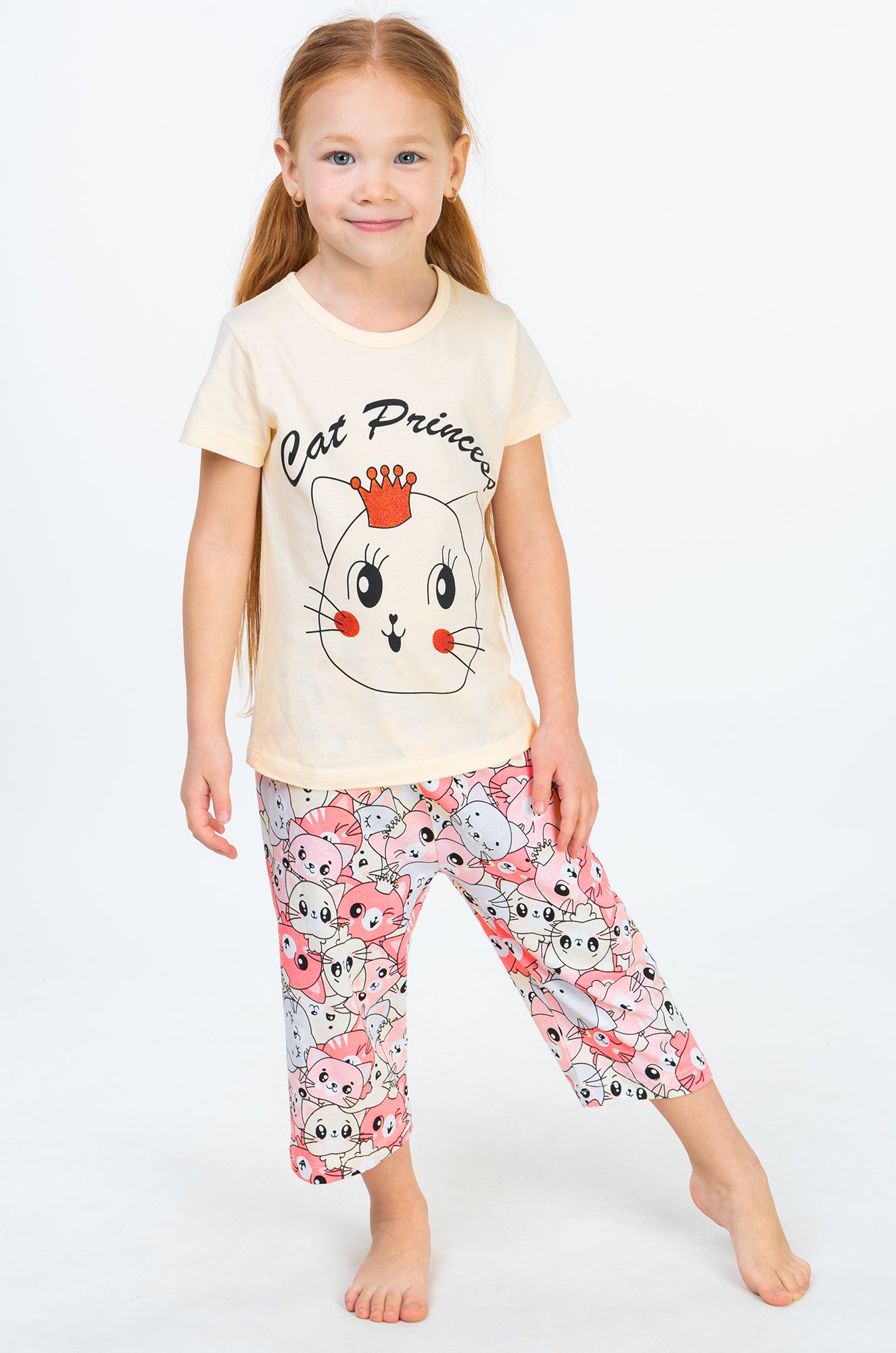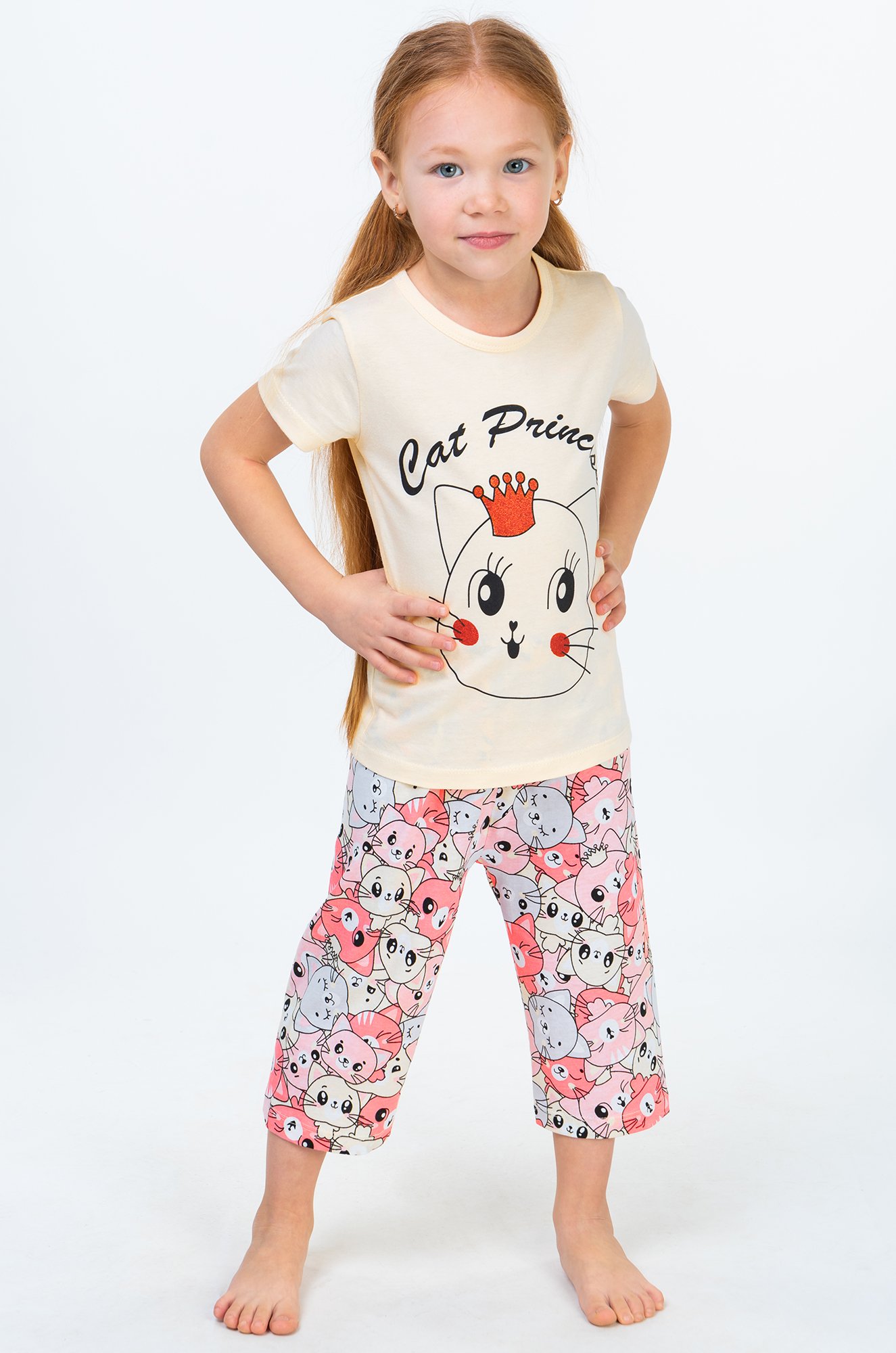 Пижама для девочки выполнена из 100% натурального хлопкового трикотажа высокого качества, ткань кулирная гладь. В комплекте футболка классического кроя и брюки на мягкой эластичной резинке.