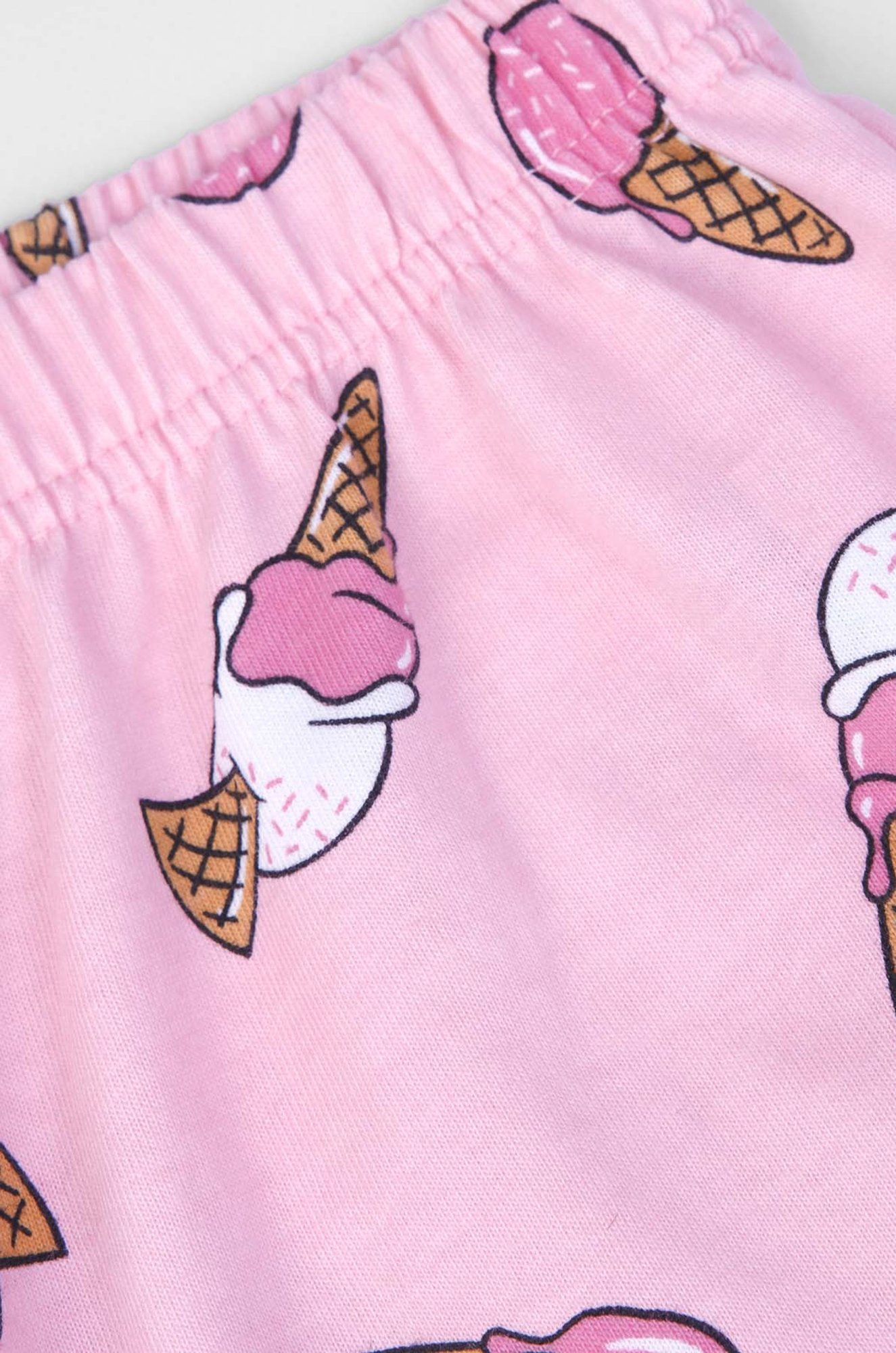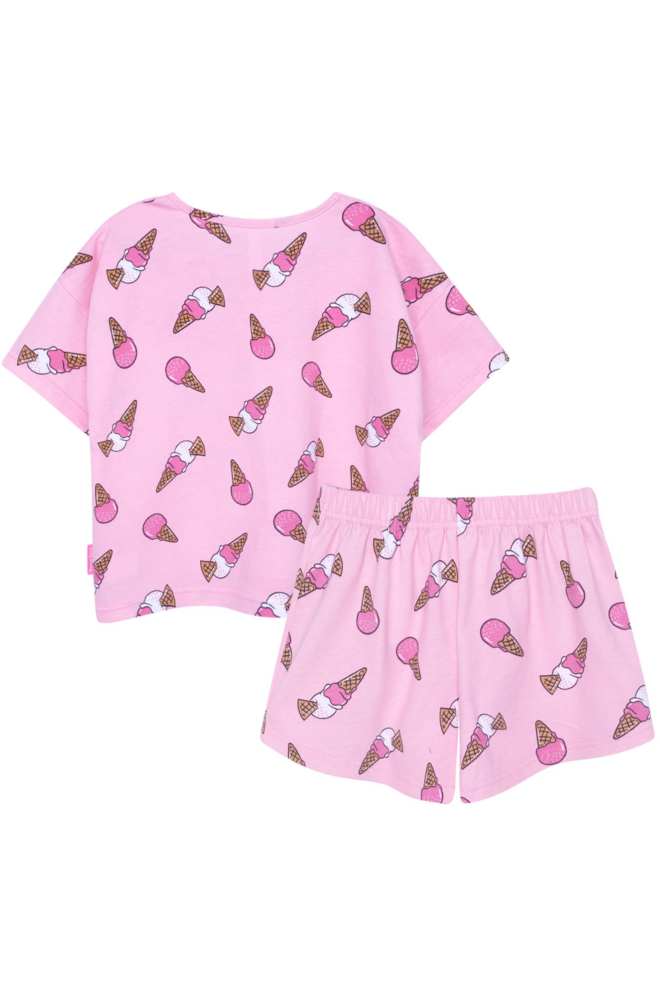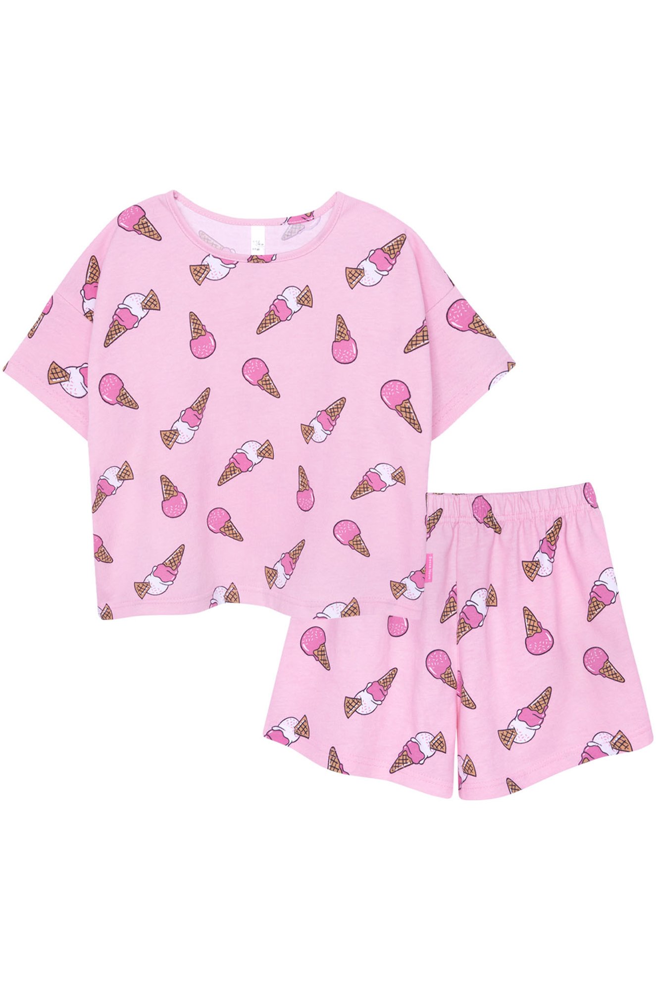 В комплекте укороченная футболка и шорты. Пижама украшена стильным принтом мороженое. Свободная футболка очень удобна для комфортного сна.