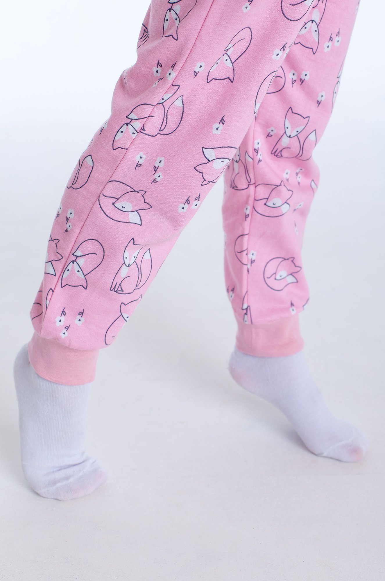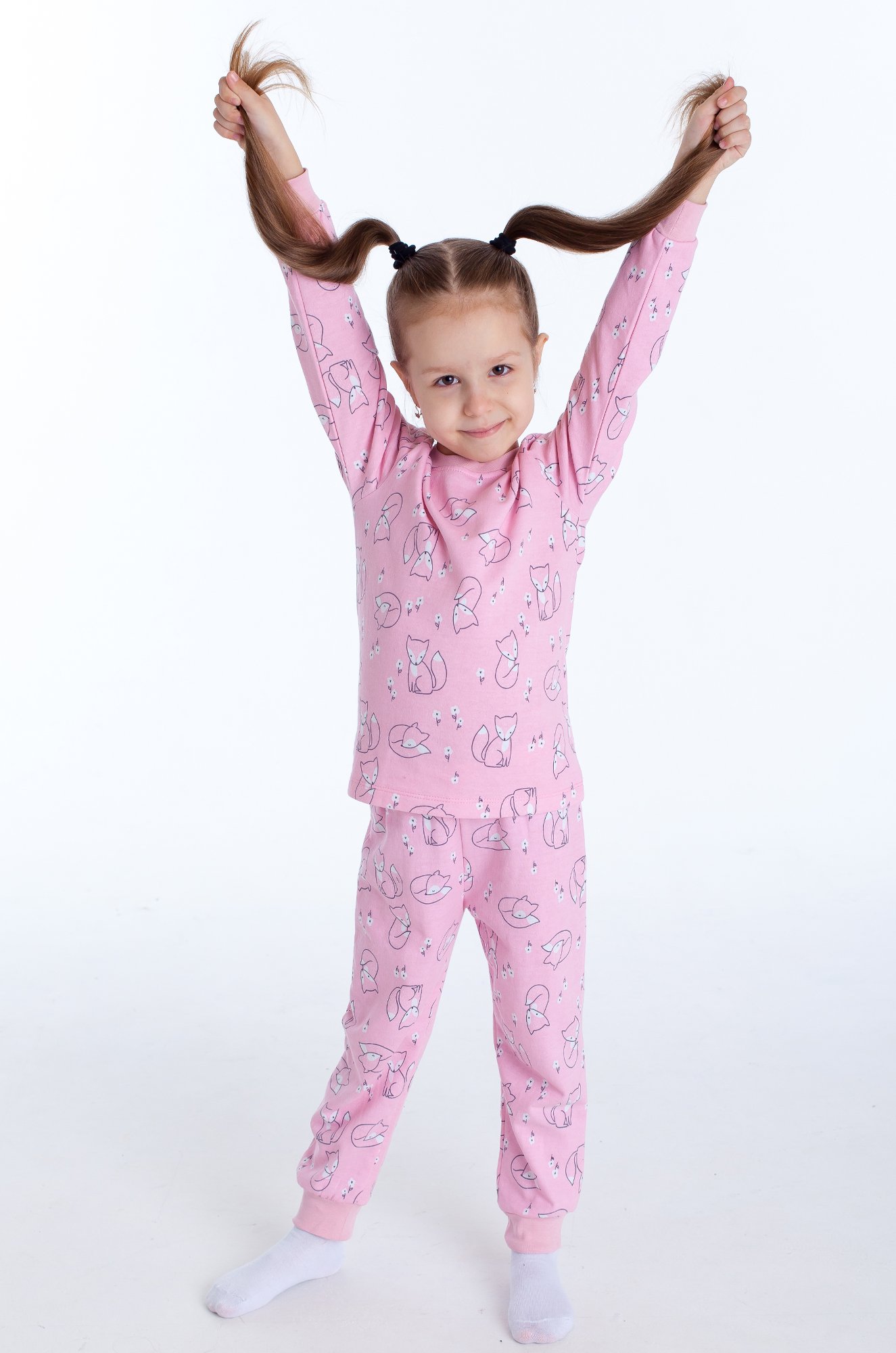 Пижама для девочек прикольным рисунком лисичка. В наборе джемпер и брюки. Джемпер с длинными рукавами, брюки на резинке. Рукава и низ брюк на эластичных манжетах. В таком костюме очень свободно и комфортно дома, в садике, на даче или на отдыхе.