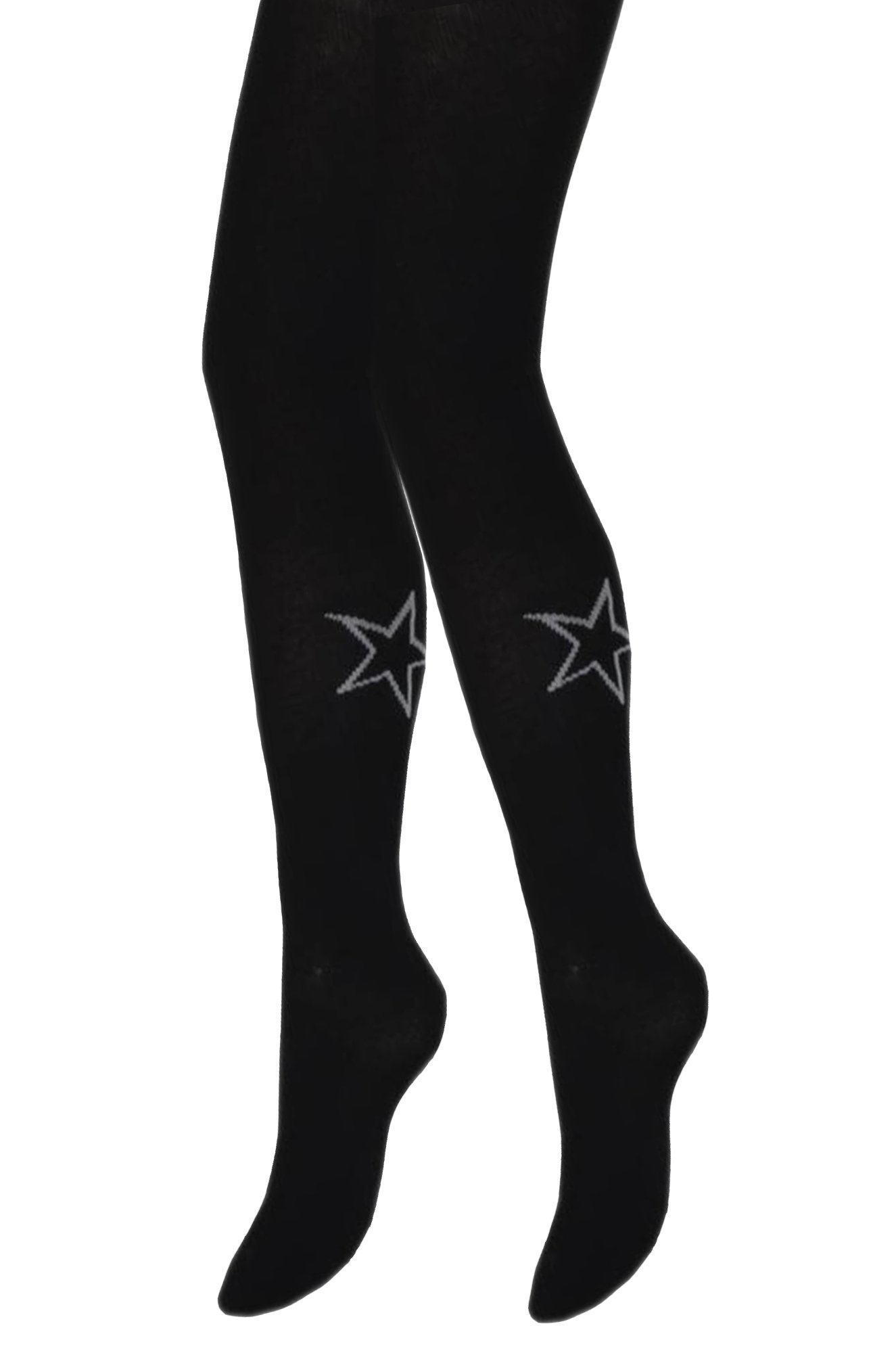Гладкие демисезонные колготки с рисунком звезда для девочек и девочек-подростков. Выполнены из пряжи с высоким содержанием хлопка.