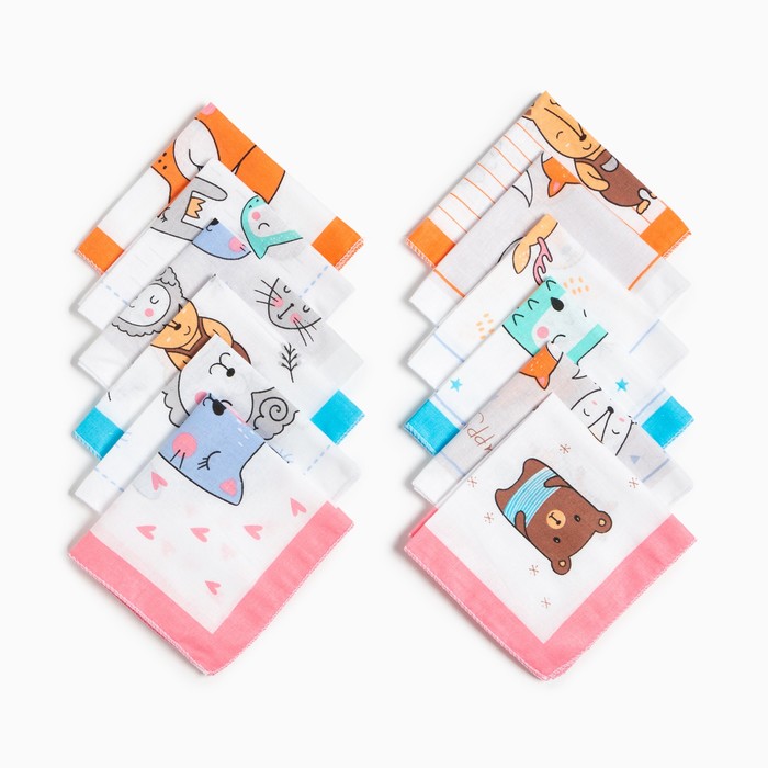 Набор носовых платков Крошка Я Зверята 21*21 см-12 шт, цв- МИКС, 100% хл