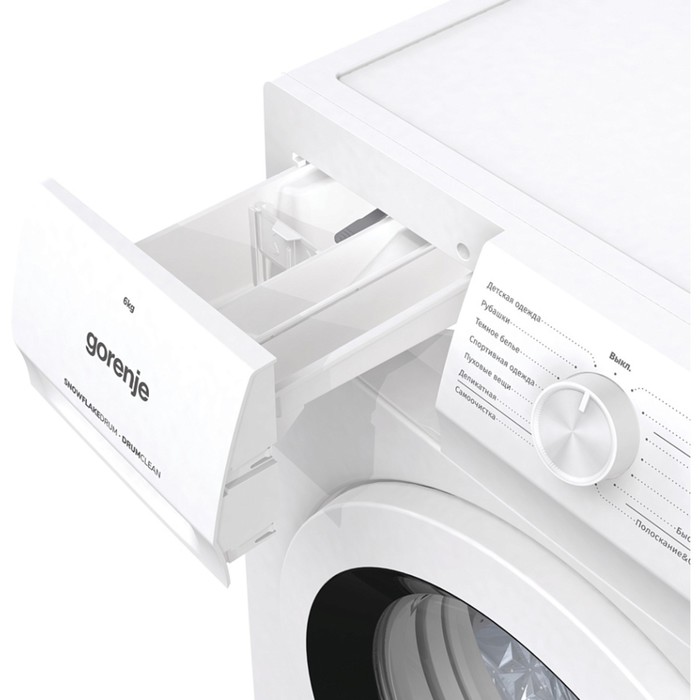 Стиральная машина Gorenje WHP60SF — модель с загрузкой 6 кг и скоростью отжима 1000 оборотов в минуту. Она выполнена в белом цвете, отличительная особенность — светодиодный дисплей, на котором отображаются параметры работы прибора.