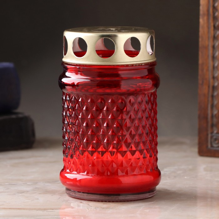 Свеча парафиновая поминальная в стеклянном подсвечнике, 11х7 см, красная