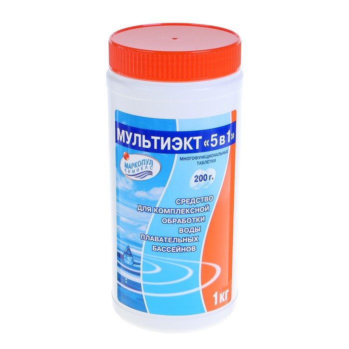 Дезинфицирующее средство Мультиэкт 5 в 1, для воды в бассейне, комплексный препарат, таблетки 200 г, 1 кг
