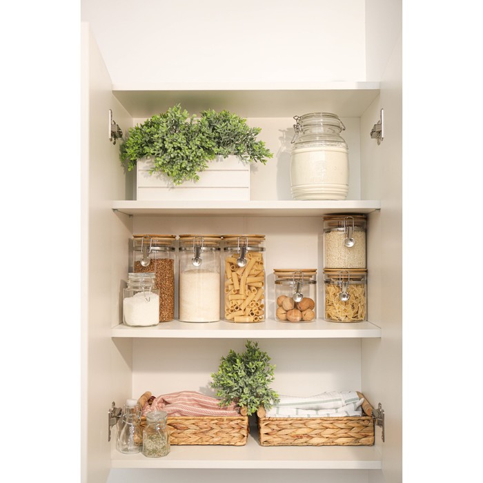 - На кухне корзину можно использовать для хранения полотенец, хозяйственных принадлежностей, бытовой химии или даже продуктов.