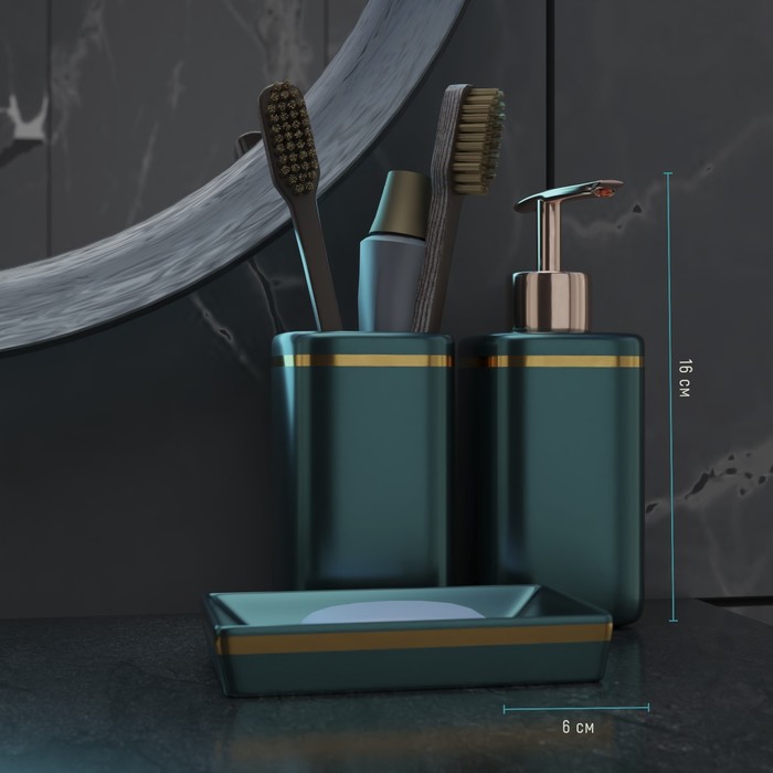 Набор аксессуаров организует пространство и станет стильным украшением Вашей ванной комнаты. За счет сдержанного дизайна данный керамический набор в ванную подойдет к любому дизайну ванной комнаты. Набор состоит из 3 предметов: дозатор, мыльница, стакан.