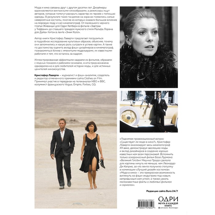 Культовое маленькое черное платье в «Завтрак у Тиффани» или эпатажные наряды героев Уэса Андерсона – все эти образы мы знаем не хуже самих сюжетов. Восхищаемся ими, цитируем и воссоздаем. Но почему они запомнились и какую роль сыграли в успехе картин? Книга известного журналиста и фэшн-аналитика Кристофера Лаверти — настоящая энциклопедия, в которой он исследует весь кинематограф XX века, начиная с иконического наряда Джуди Гарленд в фильме «Волшебник страны Оз», заканчивая образом Ольги Куриленко в «Кванте милосердия». В своей книге Лаверти рассказывает о вкладе известных дизайнеров в популярные экранизации, знакомит нас с такими легендарными тандемами, как Мартин Скорсезе и Жан-Поль Готье, Вуди Аллен и Ральф Лорен. Раскрывает неизвестные детали закадрового кинопроцесса, объясняя почему Леонардо ДиКаприо настаивал на костюмах от Армани, и какой тайный смысл они несут в картине «Волк с Уолл-стрит». С помощью сотен иллюстраций и архивных фото Криcтофер Лаверти предлагает рассмотреть историю моды через непривычную нам, но такую увлекательную призму «костюма в кино».