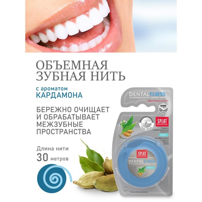 Объемная вощеная зубная нить Dental Floss с ароматом и вкусом клубники тщательно очищает боковые поверхности зубов и межзубные промежутки. Антибактериальный компонент Biosol защищает зубы от бактерий. Волокна нити распушаются по технологии RiserFloss во время использования и бережно обрабатывают всю поверхность зуба, даже скрытую под десной.
