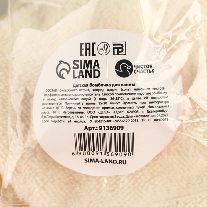 Способ применения: опустите бомбочку в ванну, наполненную водой (t воды 36-38С), и дайте ей полностью раствориться. Принимайте ванну 15-20 минут.