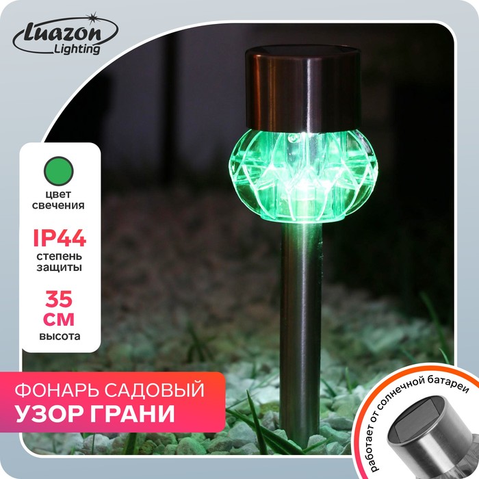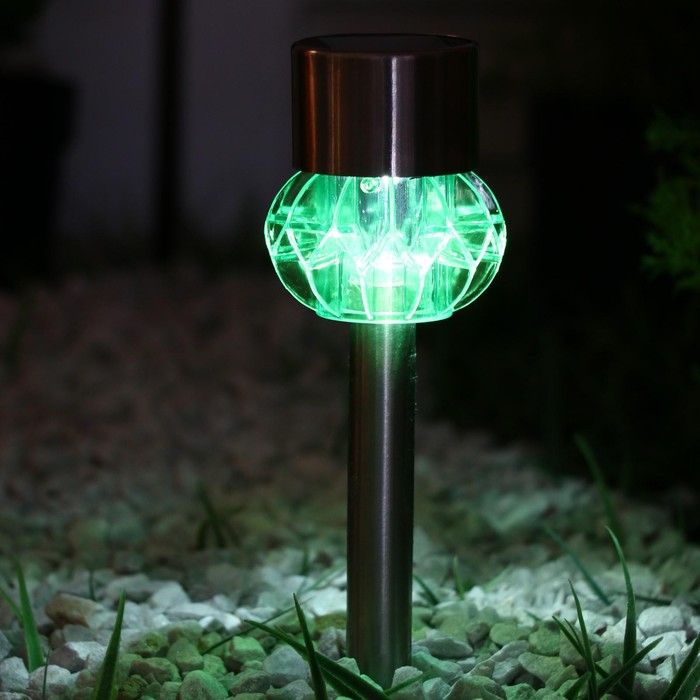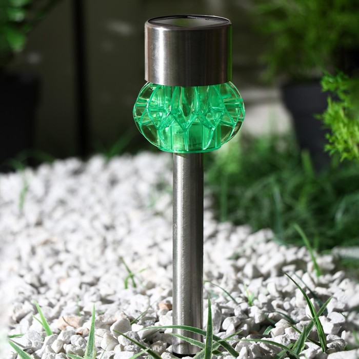 Садовый светильник на солнечной батарее «Грани зелёные», 5-5 × 29 × 5-5 см, 1 LED, свечение белое