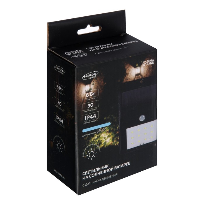 Садовый светильник на солнечной батарее с датчиком движения, накладной, 9-5 × 13 × 5 см, 64 LED, свечение белое