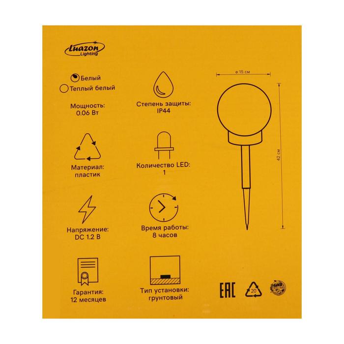 Садовый светильник на солнечной батарее «Средний шар», 15 × 38 × 15 см, 4 LED, свечение белое