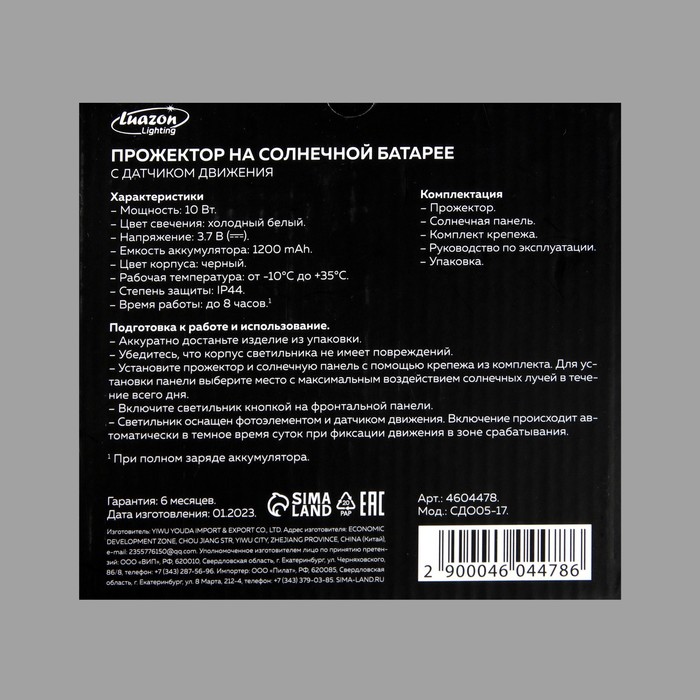 Прожектор на солнечной батарее с отдельной выносной солнечной панелью обеспечит автономное освещение как снаружи, так и внутри помещения. Светодиодный солнечный прожектор идеально подходит для освещения помещений, террас, беседок, садов, лестниц, въездных ворот, парковок и площадей. Излучает яркий приятный свет, простой в установке, работает от встроенного аккумулятора, который может подзаряжаться днем от солнечной батареи. Несмотря на свои небольшие размеры этот осветительный прибор способен излучать яркий поток света. Хорошо защищен от дождя и холода, но рекомендуем ставить под козырьком. Он также укрепит уровень безопасности вашего домовладения. Даже при непрерывном освещении он способен проработать от батареи всю ночь, 8 часов.