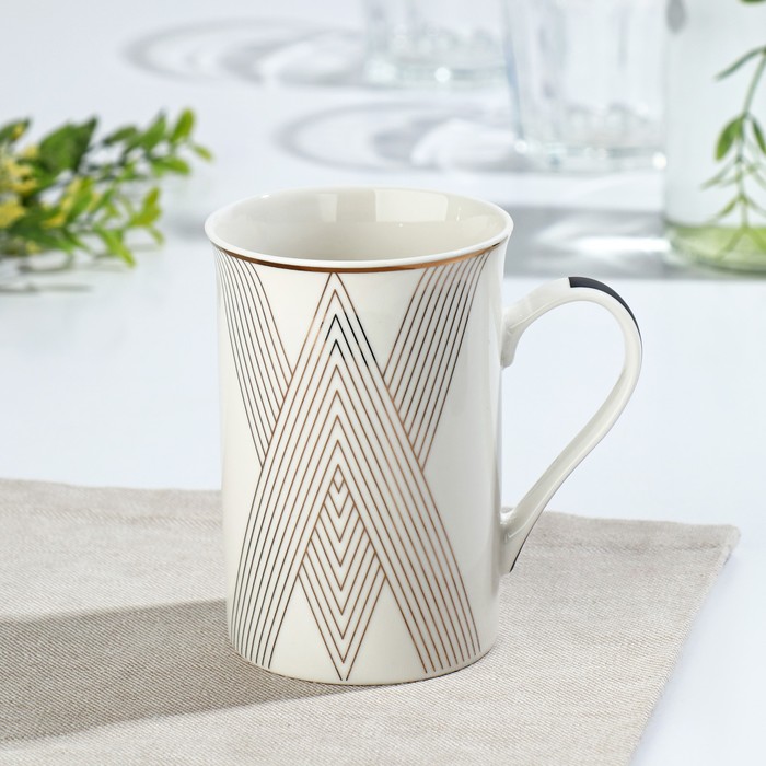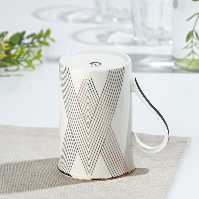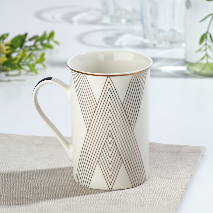 Кружка из высококачественного фарфора. Утонченная золотая окантовка, чёткие линии подчеркивают изящную форму и благородство тонкого фарфора.