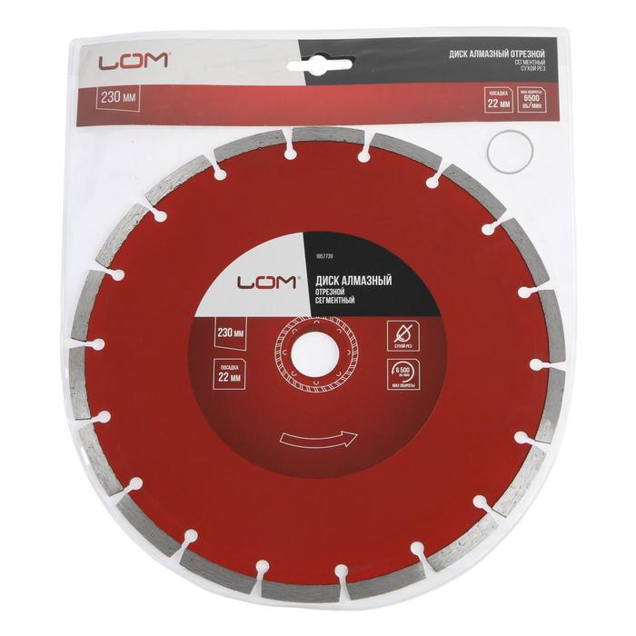Диск алмазный отрезной сегментный по сухому резу марки ЛОМ предназначен для работ с угловой шлифовальной машиной.