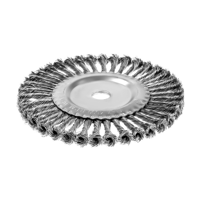 Плоская металлическая крученая щётка ТМ «TUNDRA» предназначена для грубой зачистки поверхностей изделий из различных материалов, удаления ржавчины, грязи, зачистки сварных швов металлических поверхностей. Применяется совместно с угловой шлифовальной машиной, посадочное отверстие - 22,2 мм.