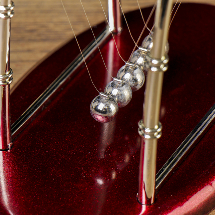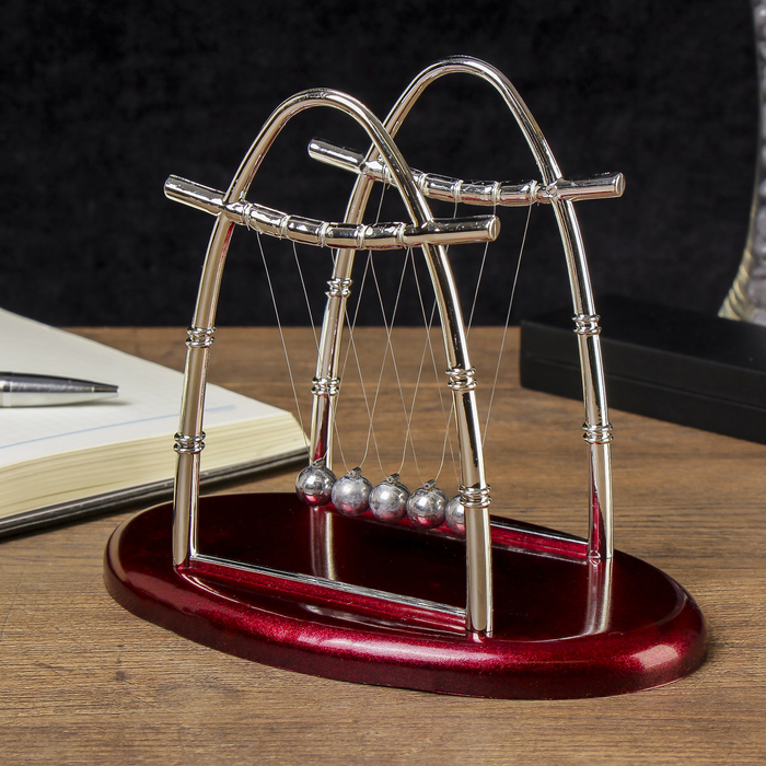 Шары Ньютона сегодня пользуется огромной популярностью у наших клиентов. Система состоит из подставки и пяти металлических шариков, которые подвешены на леске. Для активации маятника вам необходимо отвести один шарик в сторону и отпустить его. Затем наблюдайте, как шарики с противоположной стороны начинают двигаться в зеркальном отображении с той же скоростью. Через определенное время шарики останавливаются. Продолжительность движения зависит от размера и веса шариков: чем тяжелее и больше шарики, тем дольше процесс, и наоборот.