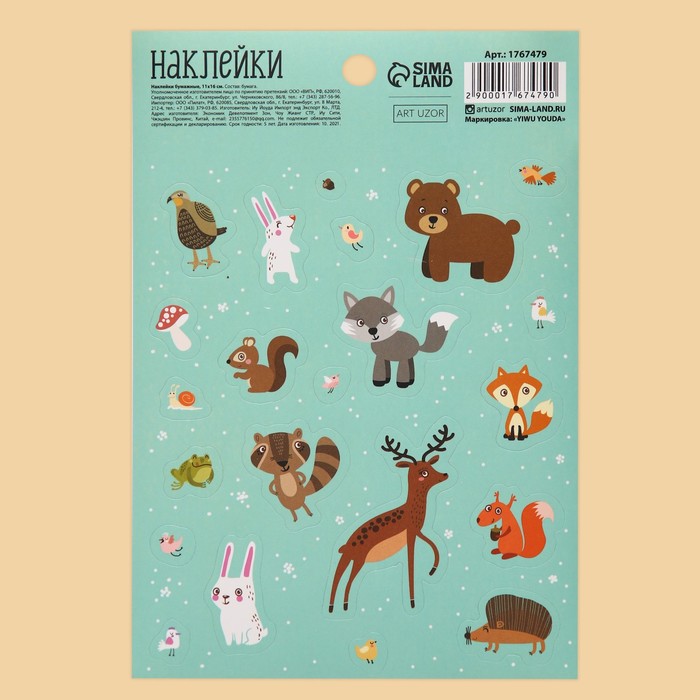 Бумажные наклейки «Лесные обитатели», 11 х 16 см