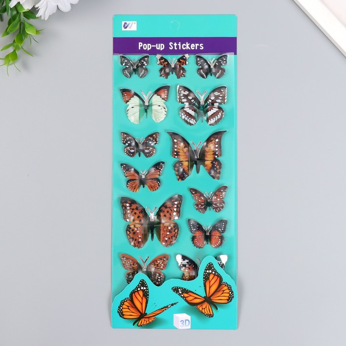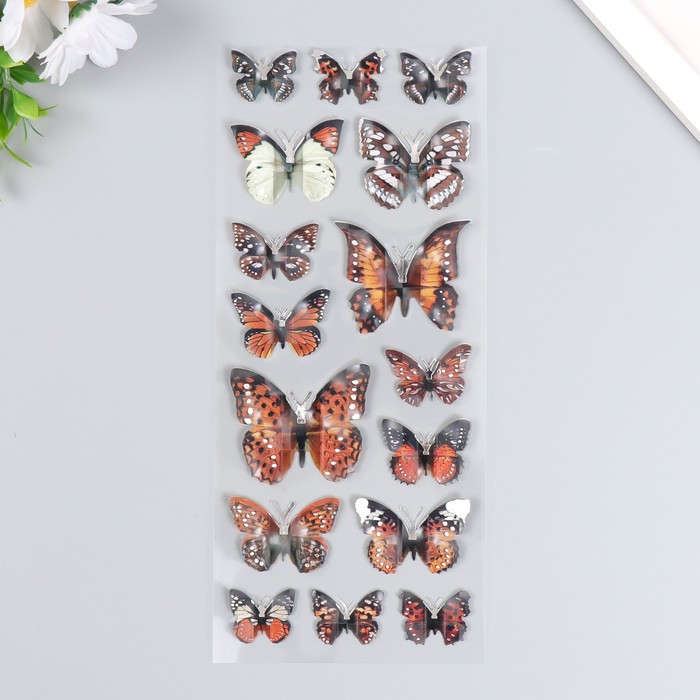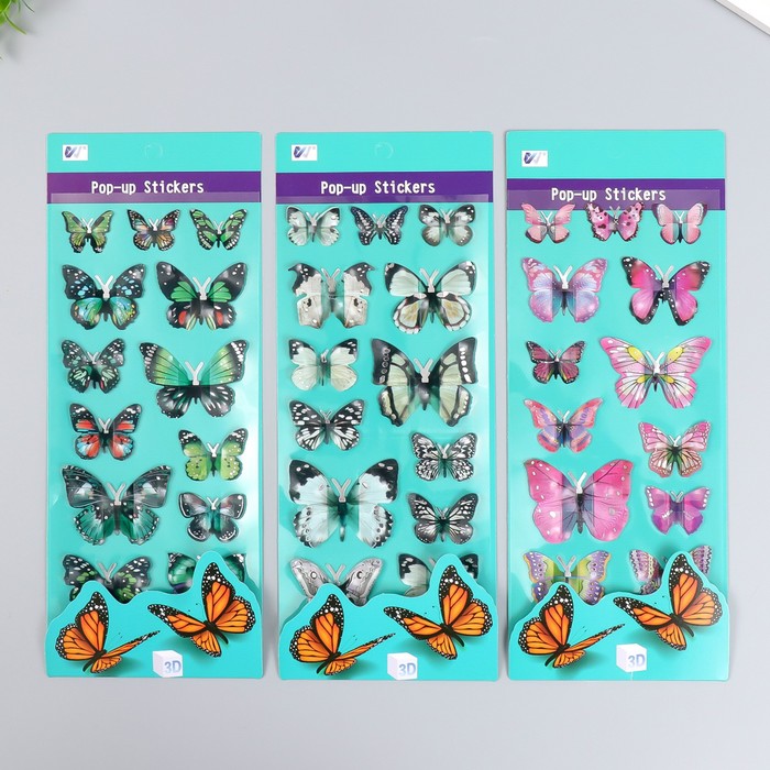 Наклейка пластик 3D Бабочки МИКС 15х27 см