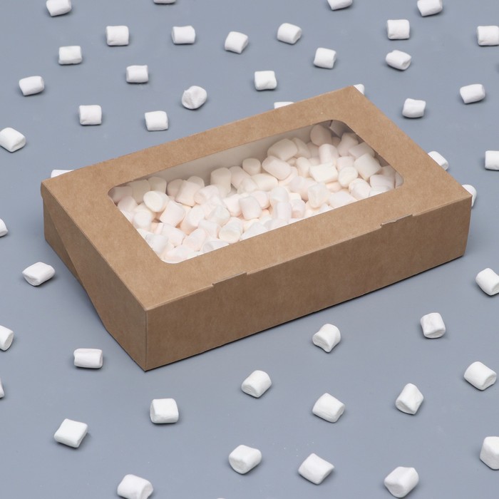 Крафт контейнер с окном для еды на вынос выполнен из плотного картона. Внутренняя поверхность покрыта тонкой защитной плёнкой, предотвращающей раскисание материала. Удобно и легко складывается. Данный вид упаковки используется для еды на вынос, удобен в использовании предприятиями общественного питания и конечным потребителем.