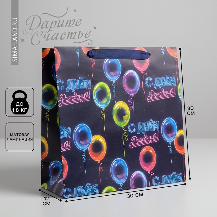 Пакет ламинированный квадратный С Днем Рождения!, 30 × 30 × 12 см