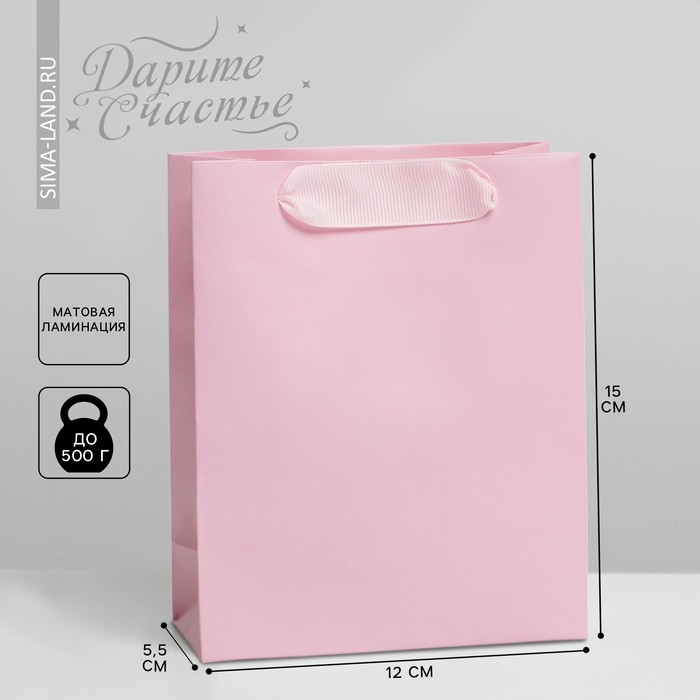 Пакет ламинированный «Розовый», S 12 × 15 × 5,5 см