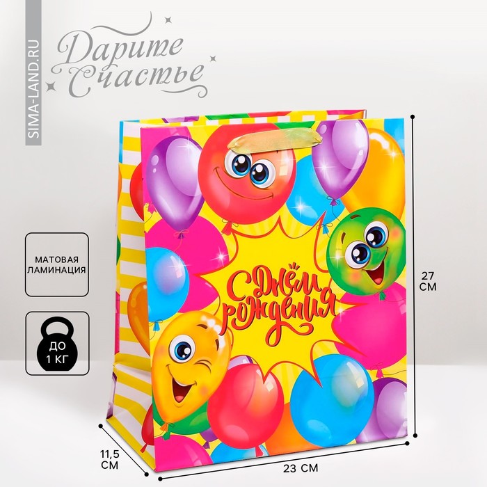 Пакет ламинированный вертикальный «Весёлого дня рождения!», ML 23 × 27 × 11,5 см