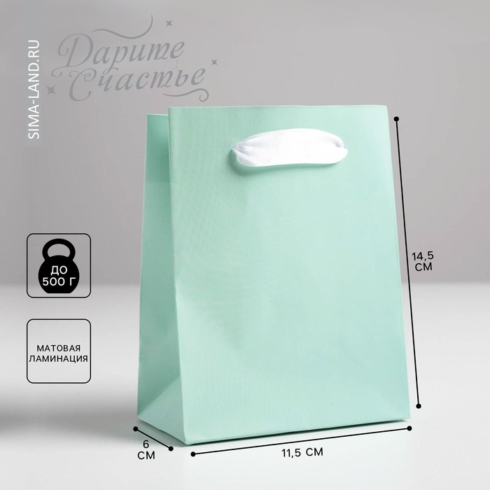 Пакет подарочный «Мятный», 11,5 × 14-5 × 6 см