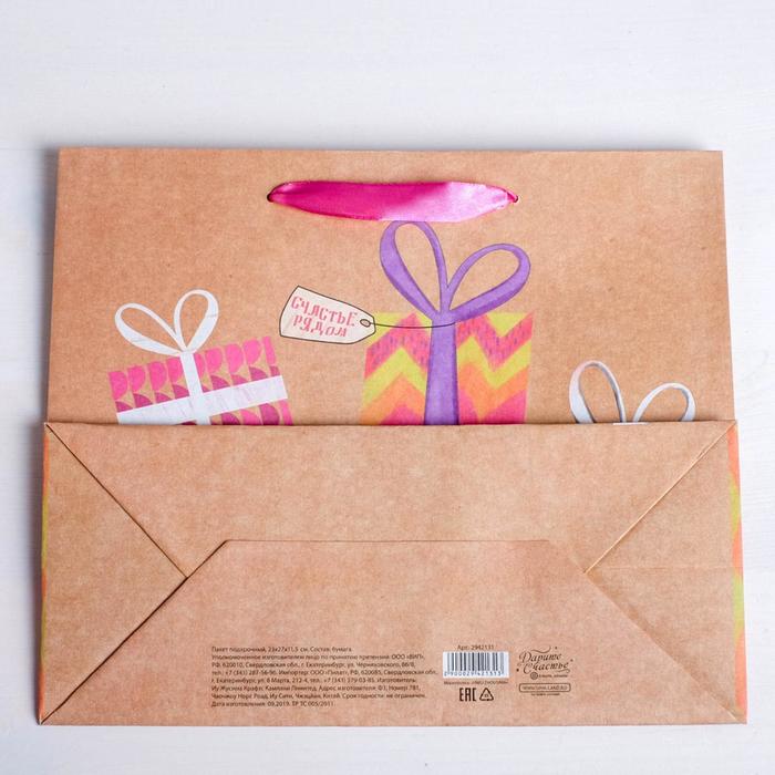 Пакет крафтовый горизонтальный «Подарки!», L 31 × 40 × 9 см