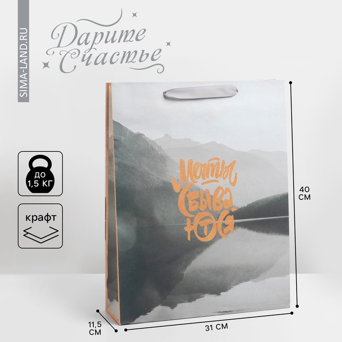 Пакет крафтовый вертикальный «Мечты сбываются», L 31 × 40 × 11,5 см