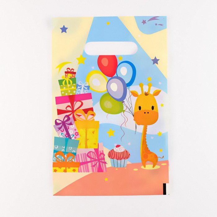 Пакет Веселый жирафик, полиэтиленовый, с вырубной ручкой, 20 х 30 см, 30 мкм