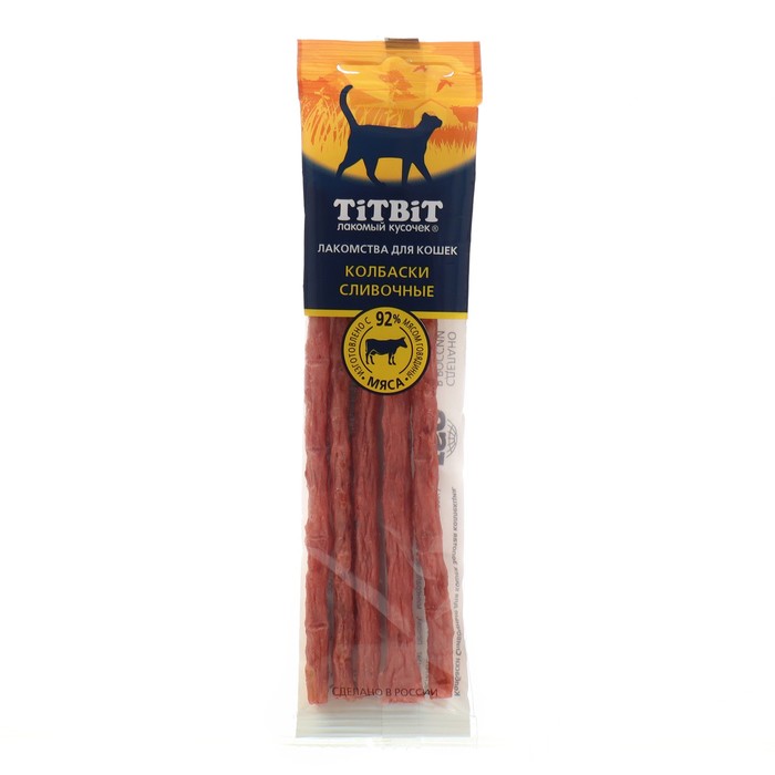 Лакомства Золотая коллекция TiTBiT– это линейка мясных лакомств, разработанных при участии владельцев домашних животных и их питомцев. Колбаски «Сливочные» приготовлены из отборной говядины и дополнены сливками, которые придают изысканность вкусу лакомства. Эти колбаски станут прекрасным угощением для вашего питомца.